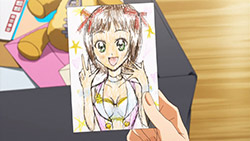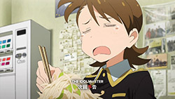 I gather this episode was to show that everything isn’t going to go smoothly for 765 Pro simply because they’re gaining popularity. 961 Pro showed its true colors and made itself out to be an underhanded rival agency, giving us an antagonist of sorts in the story. While I can see the intention, hopefully Jupiter’s involvement doesn’t become a regular thing, as I really don’t want to see their arrogant mugs taking up any more screen time. I’d much rather see more character-focused episodes where the girls get caught up in personal struggles. I’m not looking for realism when watching IM@S , so outside interference will just be annoying to watch. Granted, things still ended off in the usual uplifting way after Haruka used their fan letters to help everyone realize that 961 Pro doesn’t even matter to them. I thought for a moment that Miki rallied the group this time around, but nope, it was definitely Haruka’s optimism once again. She’s seriously the glue that keeps the group together and worthy of being considered the “main” heroine. That doesn’t mean I didn’t love Miki’s off-the-shoulder outfit and unenthusiastic reaction to her fan art though!