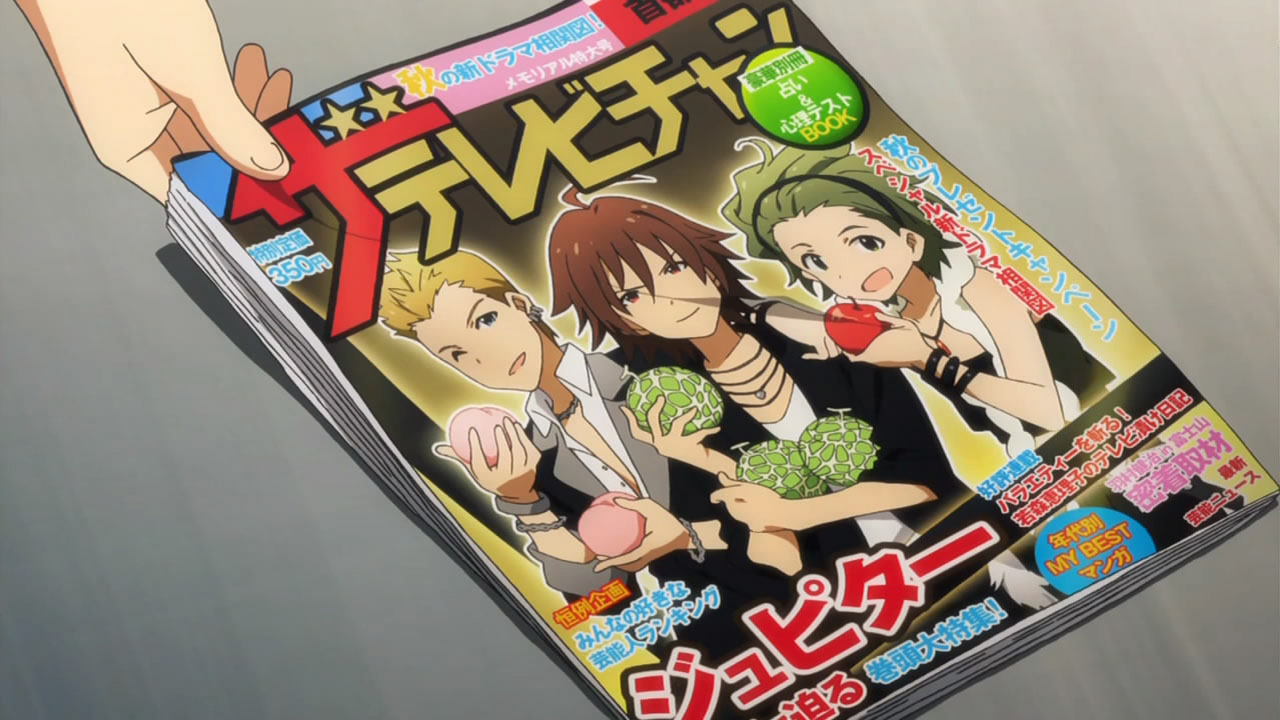 I’ll have to agree with Miki on how that’s a pretty crap-tastic photo. Who the heck wants to see three arrogant bastards holding fruit instead of cute idols dressed up as fruit? Part of me really wishes the Producer didn’t stop Iori from using her family’s status to put Takao and Jupiter in their place. After all, it worked wonders before on Kodama Pro. Rather than “stooping to their level”, the bad role model in me prefers to think of it as “payback’s a bitch.” Unfortunately, that wasn’t going to fly with our Producer. He let those bastards stomp all over the innocent hearts of his idols and forced his righteous views on them about beating 961 Pro fairly. For a show like this, that wasn’t the least bit unexpected, but I do feel that the Producer and President Takagi Junjirou better make good on “politely” screwing over Jupiter in return — especially when this problem boils down to a falling out between Junjirou and Takao.