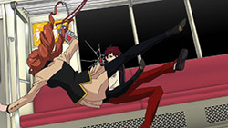 (3) The black suited men (who loan money to Kanba) being part of the terrorist group his mother and father supposedly led. They only meet on trains… The terrorist attacks took place on trains… Yeah, you see the connection.