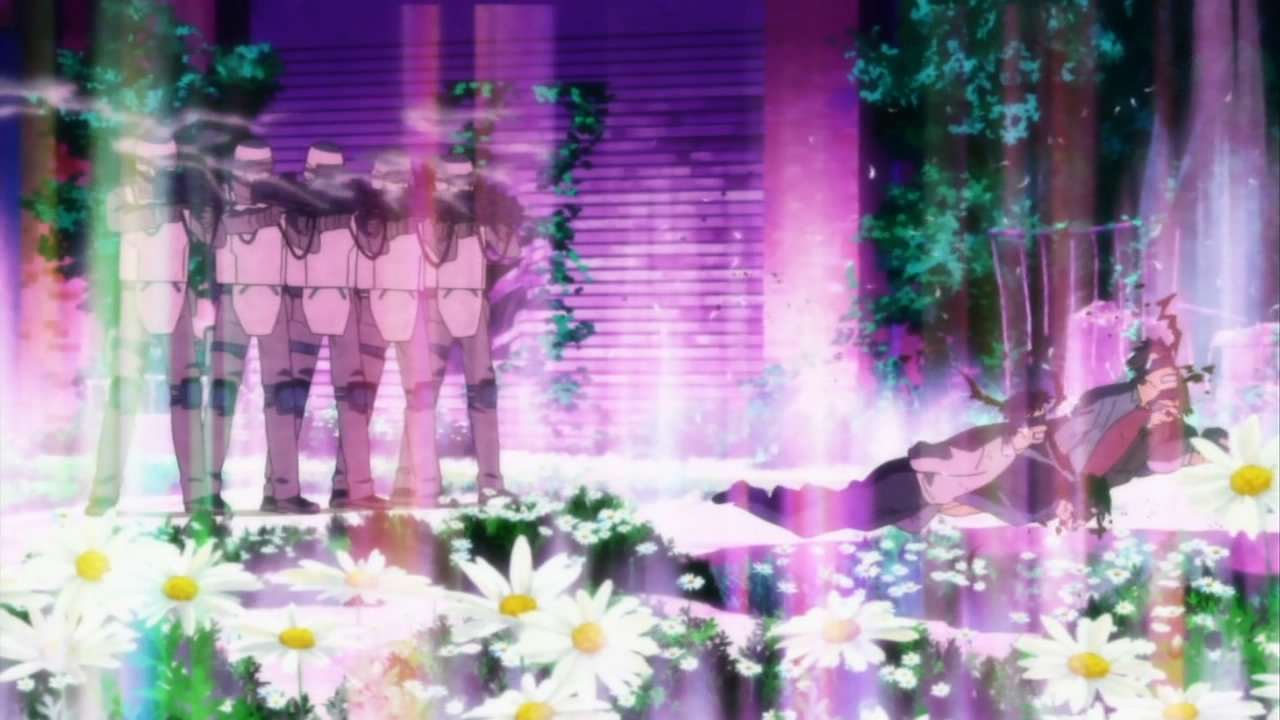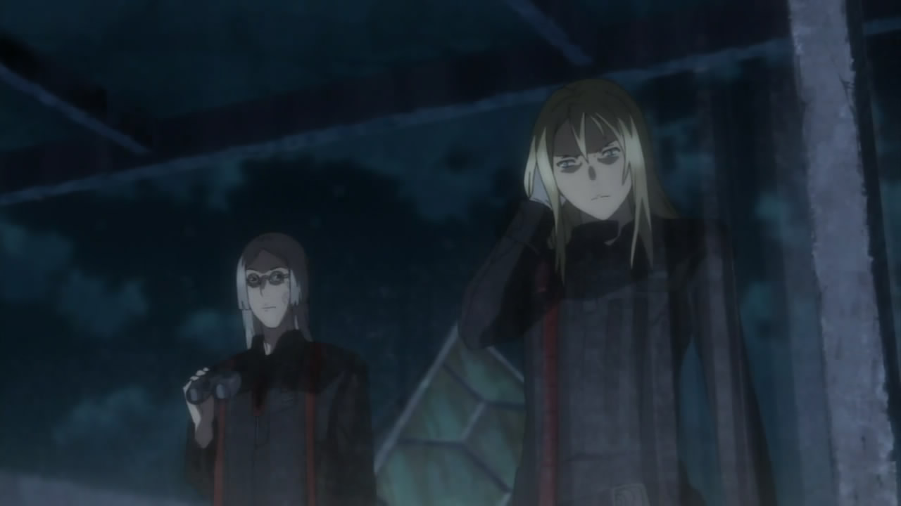 I’d have to agree about Gai. My thinking is either 1) he’s aware to some degree of the aforementioned theory I proposed, so he’s putting on an act for everyone but in truth knows Shu is more crucial than he’s let on and this is Gai’s roundabout strategy to get Shu to join their side. 2) He really is mad as a hatter, but is also simultaneously such a brilliant/self-assured guy that he has absolute faith in the people he employs for these missions, including Mr. Happenstance Shu. Gai appraised Shu’s character during the interactions he had with Inori, so Gai’s decision to include Shu in the later – vastly more risky and dangerous – operation to free the hostages wasn’t entirely “let’s randomly bet everyone on the untested new guy.” OR! 3) Gai’s battiness is attributed to a type of devote faith, believing everything his group does is linked to a ‘divine master plan’, so Shu’s part in this is deemed “destined,” thus he then assumes Shu possesses whatever luck/skill/qualities needed to aid Funeral Parlor (Awesome name, by the by) since Mr. newcomer was “always meant” to be.
