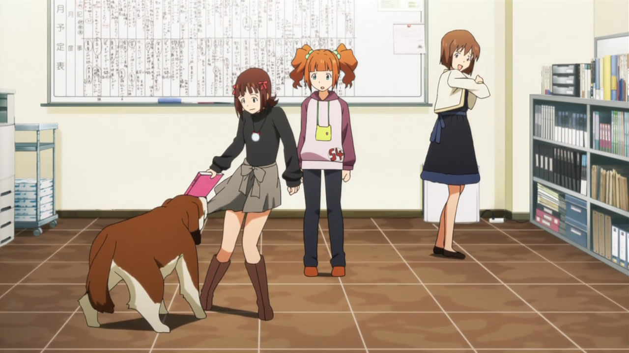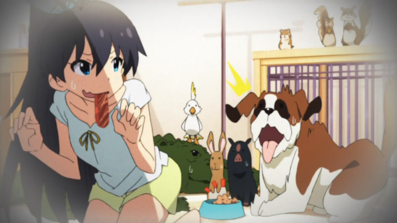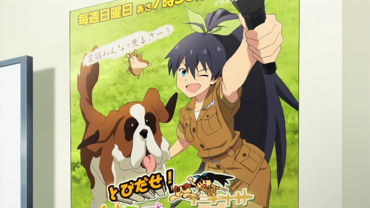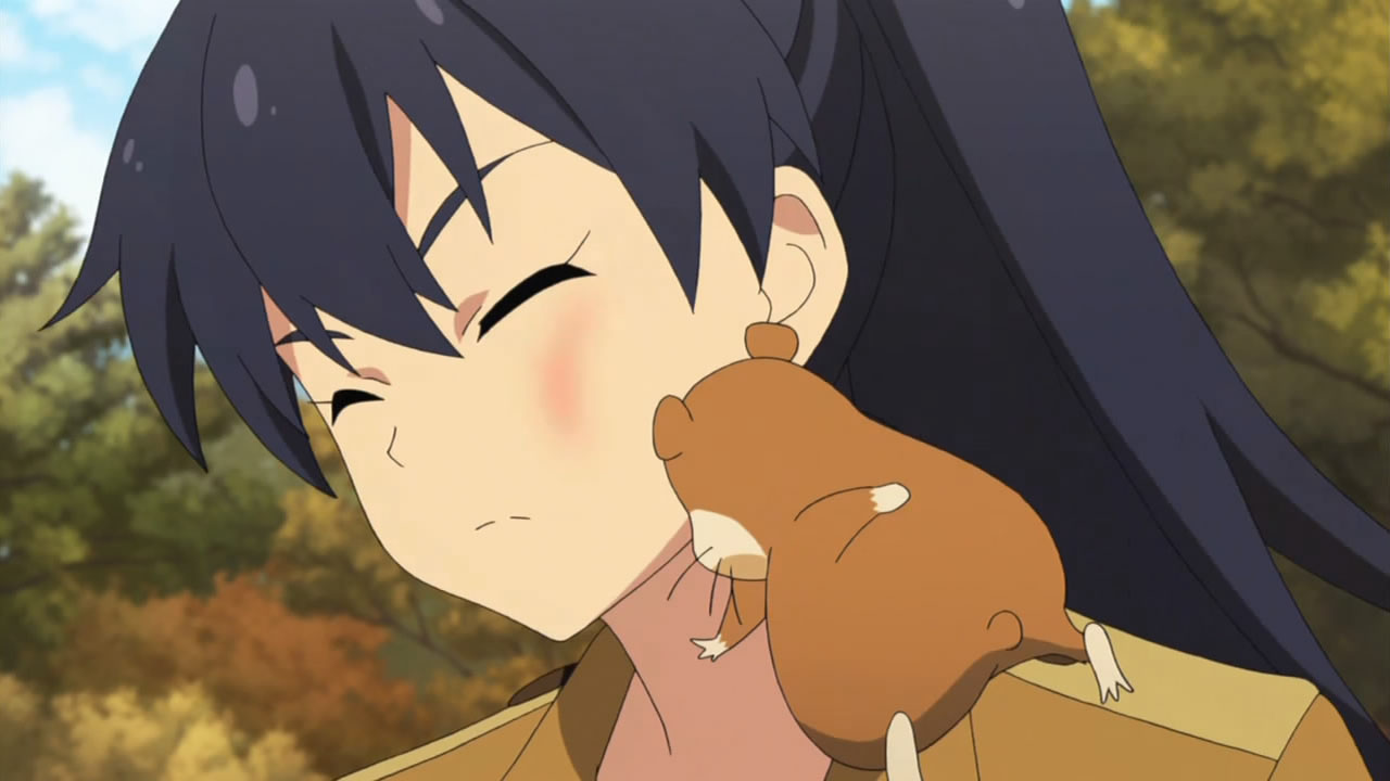The idol version of Ace Ventura. 😛 I love her the most. Animal lover, very long black hair and always full of energy. Hamuzou or whatever (the hamster of course), remind me to that “Chikubi” from the Mitsudomoe and i always laugh when i see this mini iron man. What the hack did it! Somebody mentioned the coloring of the dog was weaker, because they want to save money on it. Is it possible or it was just negligence? Don’t have A-1 pictures enough money for their production? Strange. I learned haisai from her anyway and i will annoy my friends with. ^^