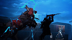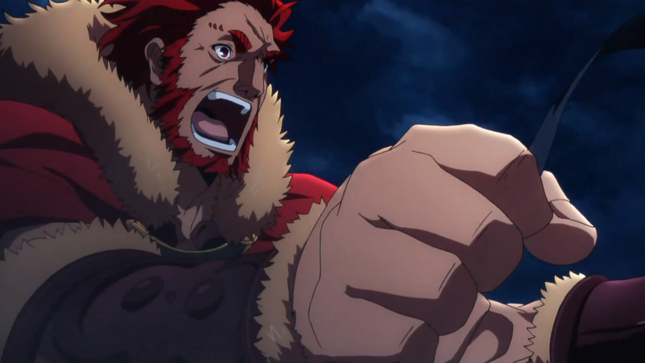 They’re really pulling out all the stops now, as what looked like four Servants standing off against one another suddenly became six. I don’t recall that ever happening in Fate/stay night. With the way they were assessing the situation and feeling one another out, it could’ve easily turned into a free-for-all battle royal. All it probably would’ve taken is a gunshot from the shadows, which is probably why Kiritsugu was wise enough to not set off all the Servants off and cause all hell to break loose. He could’ve easily put a hole through Waver’s head and taken both him and Rider out in one fell swoop, but the only ones who would’ve benefited from that are the Masters who didn’t have a Servant standing on the battlefield. Kiritsugu clearly isn’t stupid enough to act before he has to, and I dare say that if he had a choice, he wouldn’t have let Saber take part in the actual first battle to mark the start of the war and instead, let the competition thin itself out as much as possible. Saber of course wasn’t going to cower and hide in the face of an enemy, leading us to where we are now. I’m not going to lie; Part of me wishes Saber and Lancer accepted Rider’s offer to team up — or at the very least, proposed that they be treated as equals — simply because they would’ve been a force to be reckoned with. (What a waste indeed.)
