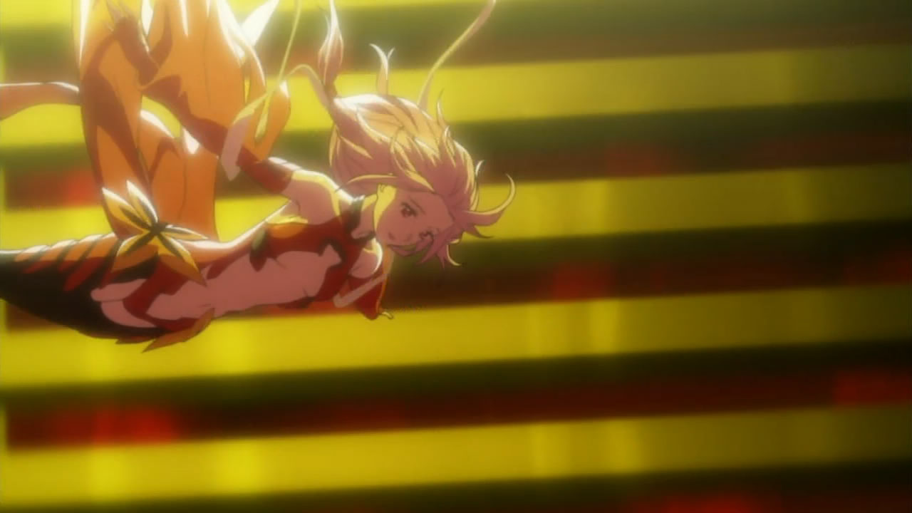 I find it interesting that Inori’s “heart” has such an awesome offensive capability, considering her soft spoken nature (though not to overlook the fact that she risks her life as a terrorist). I think it says a lot about her true character.