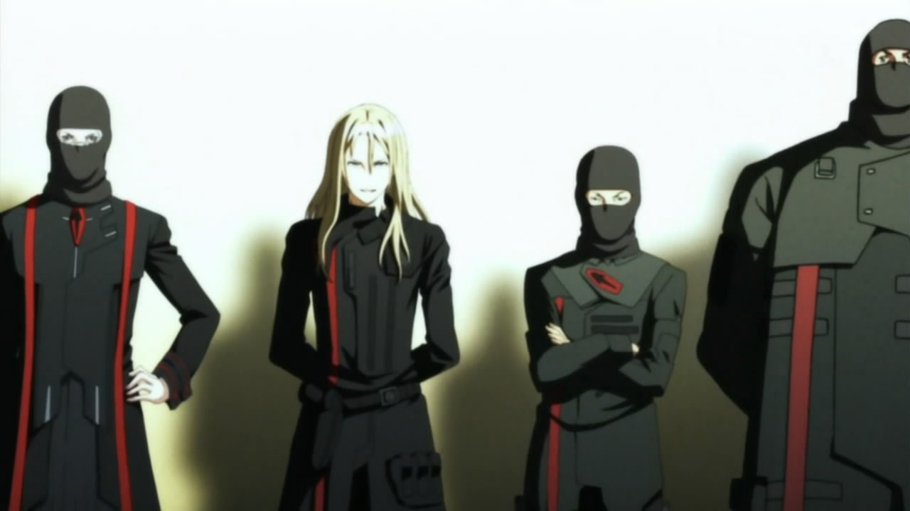 It may surprise some people when I say that Yahiro was another character highlight, but learning that he didn’t feel any guilt over selling out Shuu spoke volumes to me. The introduction of his virus-infected younger brother Jun and the revelation that Yahiro’s been selling Norma Gene (and not taking it) to support him left me with every reason to believe that there’s more depth to his character than we’ve seen. While I can’t picture how it would play out, I don’t think it’s too far-fetched to anticipate that Yahiro will redeem himself at some point. He’s not exactly the first character we’ve come across who’s willing to do anything to save a family member — even if it means turning their back on the world — so I’m looking forward to seeing how involved he gets in the Funeral Parlor/GHQ struggled down the road. The same goes for “mass murderer” Kido Kenji (Okamoto Nobuhiko, in everything again), whom I was half-expecting to be voiced by Miyano Mamoru because images of Durarara’s Kida Masaomi came to mind when his face was revealed.