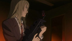 Gotta agree with that. Kaleidoscope was useful in only that one situation to reflect the lasers and this gun was only of use to disable the enemy temporarily. So far that sword is the best weapon he has, making Inori indispensable. (Why he would want anything else is beyond me, beautiful girl + epic weapon, what else could he want? That lucky fool.)