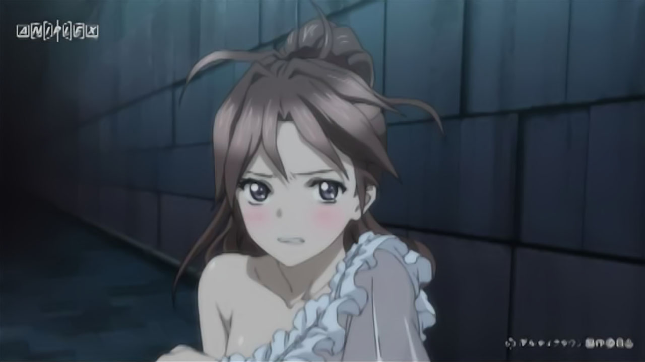 BTW, anyone know how Inori’s clothes stay on as she jumps face down with an open shirt?