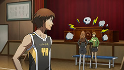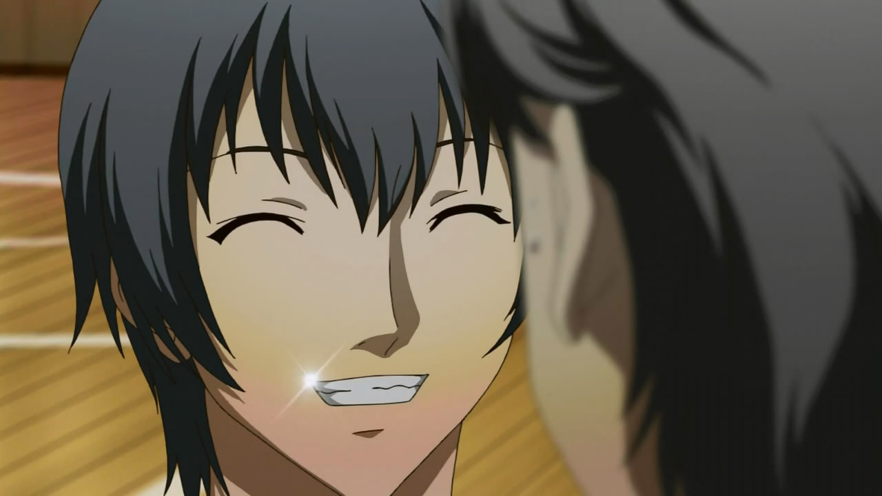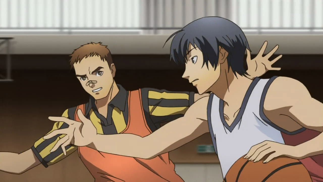 Despite his best Ichimaru Gin impression, Ichijou is actually a genuinely great guy who really doesn’t have very many issues, aside from a rather clichéd one: he is the heir of a rich and powerful family who partakes in a frowned upon hobby. Forced to give up basketball, all he wants is to win his last game so he can confess to Chie. It’s a shame that Ichijou’s story couldn’t have been developed more because in the video game, a recent discovery about his family gives his story a unique twist and the soccer club’s Nagase Daisuke (Sugita Tomokazu) isn’t relegated to a mere background character. Despite losing by thirty points with a minute left, I thought it was hilarious that Ichijou still managed to make his final shots appear dramatic. Wonder why they didn’t make the score closer for added tension? Yousuke just standing around and Yuu’s porous defense didn’t help the team’s competitiveness either.