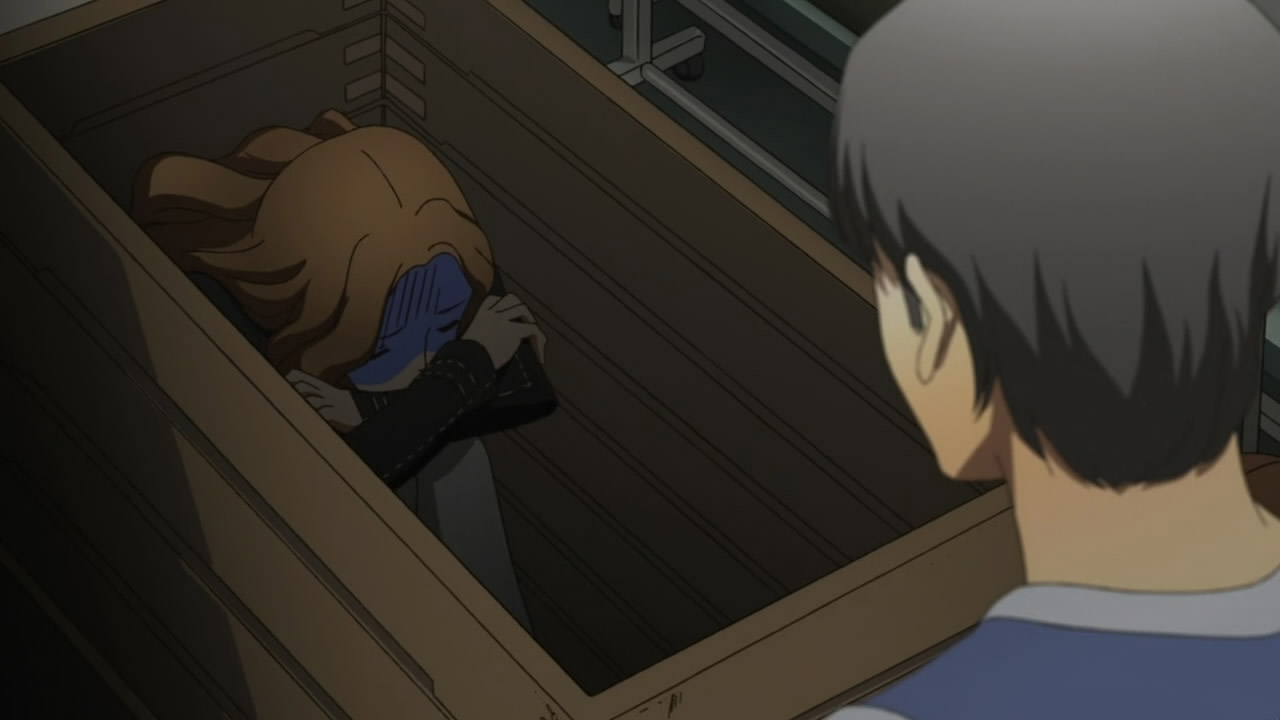 In the store room scene Ebihara wasn’t hiding in a crate, it was a vaulting horse. You can see the padded top as he lifts it off the base. After 5 years of gymnastics (and sucking at it) I know a horse when I see one.