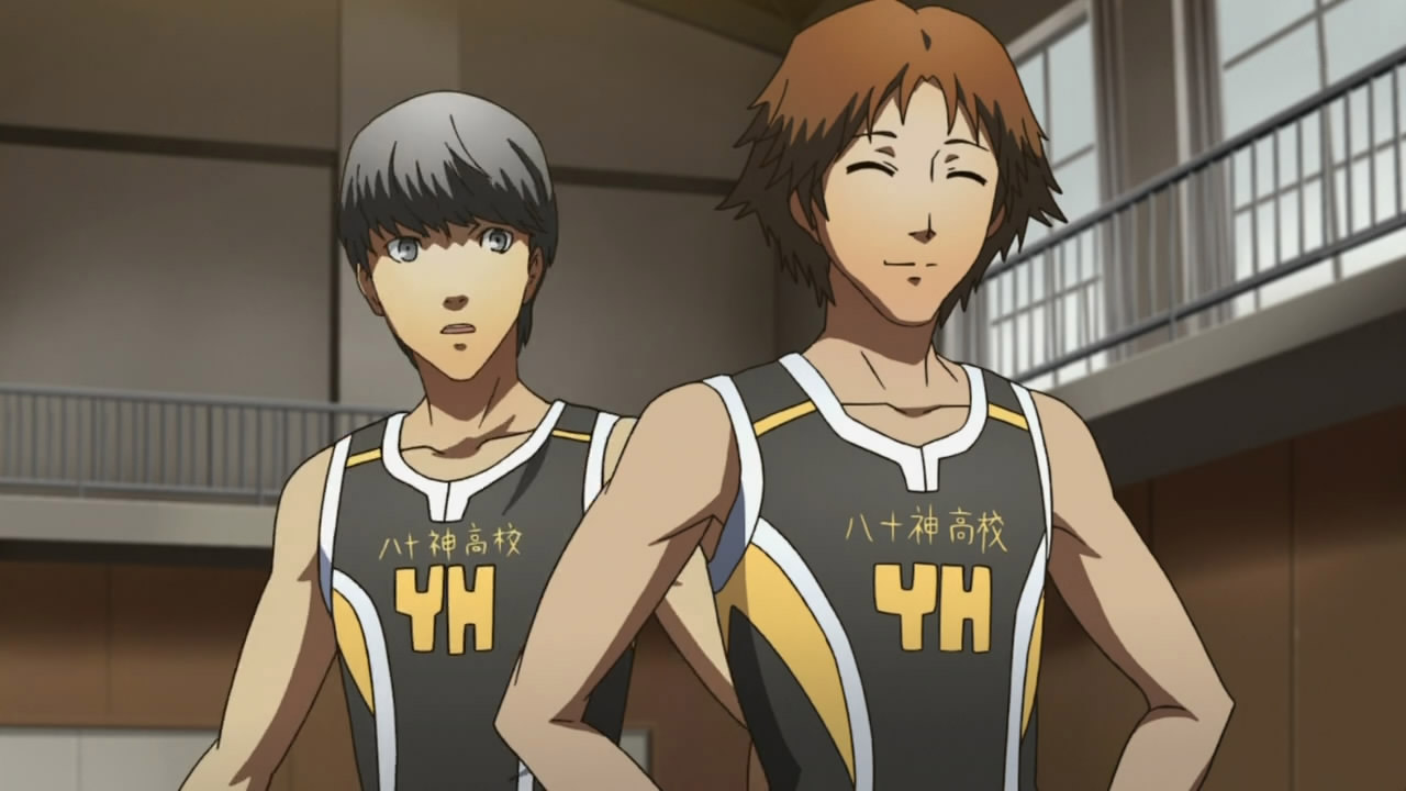 Back at school the day after rescuing Yukiko, it was pretty amusing to see Yousuke as the only one who complained about being tired after the group’s adventures in the Mayonaka TV dungeons while Yuu remained stoic as usual. Yousuke has the right idea though, once finals are over, there’s nothing quite like taking advantage of the massage chairs at the mall. Seeing that Yuu’s toughness doesn’t come from being in any of the athletic clubs (and probably also realizing that he’s a fairly tall guy), Chie decides to have him join the basketball club where he meets the captain of the basketball team, Ichijou Kou (Ono Daisuke), and their team manager, Ebihara Ai (Itou Kanae), who could not have been any more different.