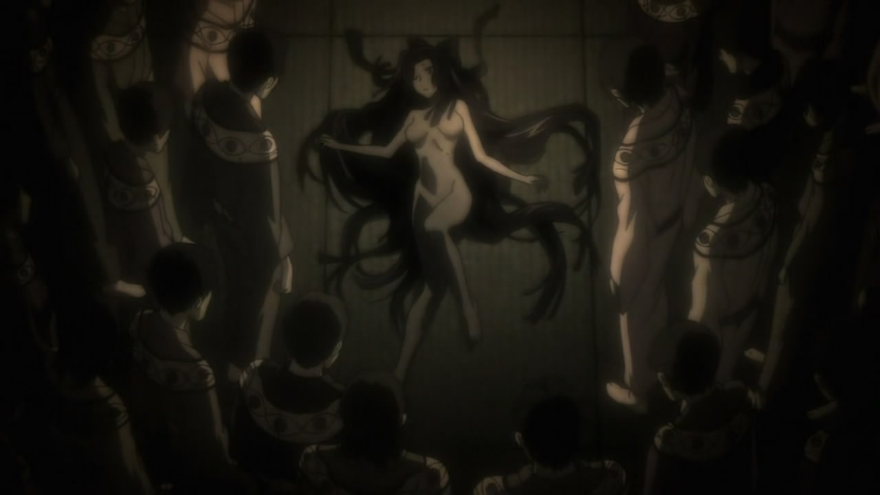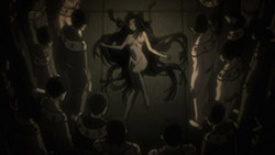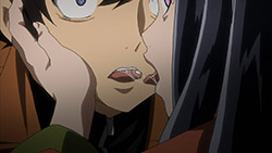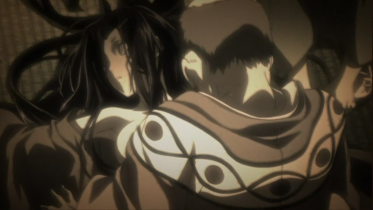 FTR, some of that was left out intentionally by me, especially the shot of Tsubaki being gang-raped. I thought that the point was made and there was a lot more to the episode than that, and I didn’t want it to seem as if that were the focus of the episode. It was highly disturbing and it was meant to be, but I don’t think it was intended as titillation.
