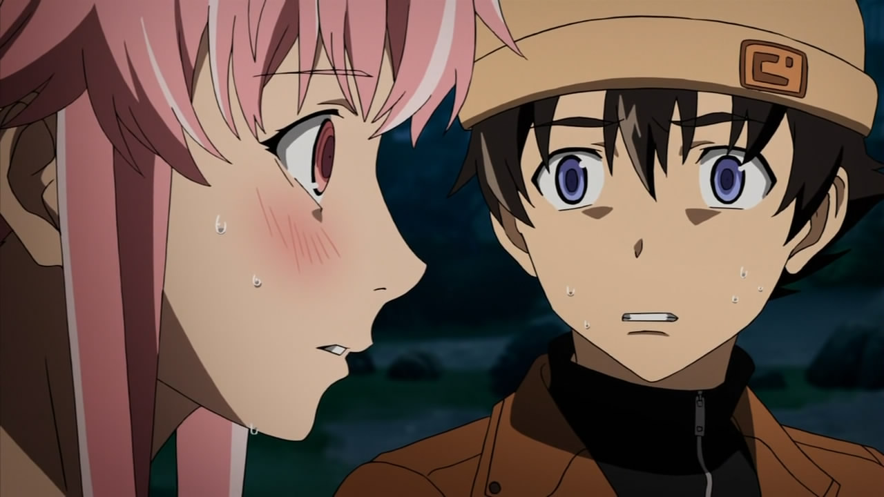 We’ve seen 5 episodes. Up to that point, when has Yukiteru taken the initiative? Besides bemoaning his lack of balls?