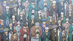 I enjoyed this episode quite a bit – in fact I’d rank it as the second best after episode three (which for me stands far above any other so far). The two episodes have some distinct commonalities, but the most important for me is that both have a weightiness and dignity that have otherwise been more lacking than my tastes would prefer. Too often, “Fam” has undercut the interesting and complex plot it’s laid out with a somewhat flippant and too buoyant (ironic, that one) tone. Series where the characters smile non-stop are never better for it, but it’s especially a problem when they ask you to take them seriously. Eden of the East is another show that suffered from this, to some extent.