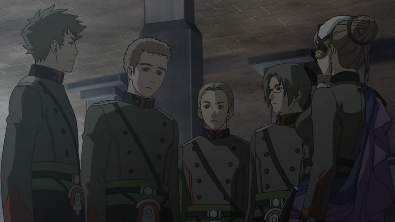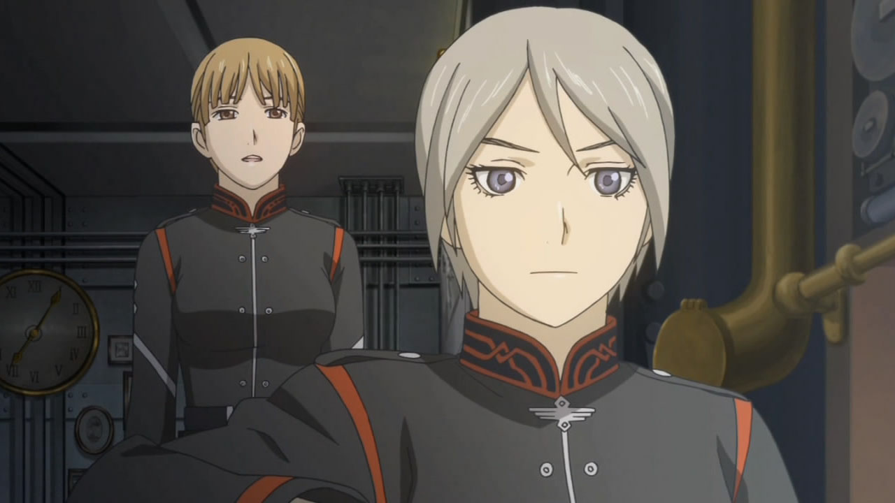 Enjoying the series so far, meaning that I look forward to each new episode and like the general direction the plot has taken. For me at least the main problem isn’t that the series doesn’t have enough interesting supporting characters. The problem is that all those interesting supporting characters are antagonists. Tatiana and Alister aside, Luscinia and his gang of Ades commanders have received the most attention so far, to the point that were this a different series I’d be wishing they and little Augusta were the protagonists (an antihero Luscinia and his interactions with the purer Augusta would be very interesting, seeing as they seem to want the same thing but use different methods to obtain it). Teddy has risen in my estimation ever since he and Millia staged their little coup inside the Sylvia, and I always liked Tatiana, but so far I haven’t seen much in the way of interesting character design or development outside the three female protagonists.