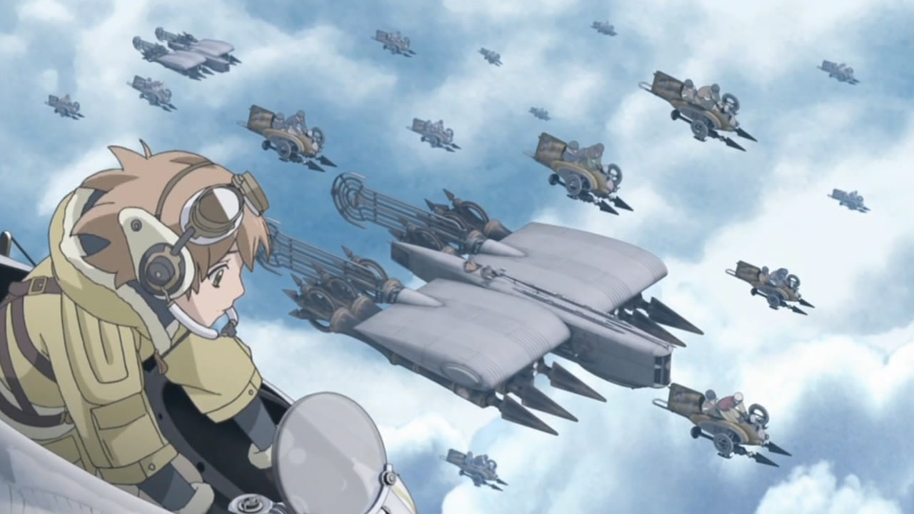 The next episode should be good; perhaps we’ll finally get to see how Tatiana compares to Alex as a warship commander. One thing that interested me in the episode tease at the end was a shot of five or so vanships flying in formation during combat. I’m really hoping Tatiana and the other Prester immigrants have brought Mad-Thane’s ideas about vanship’s usefulness in ship-to-ship combat with them into this new series. The lack of practical application for vanships aside from scouting and message delivery was always bothering me in the first series, especially when it was made plain pretty quickly that they were more than capable of doing some damage to the ships of the line. Since the newer, smaller vanships clearly excel at incapacitating skyfish, here’s hoping that Red Baroness Tatiana knows how to use the larger combat models for more destructive purposes.