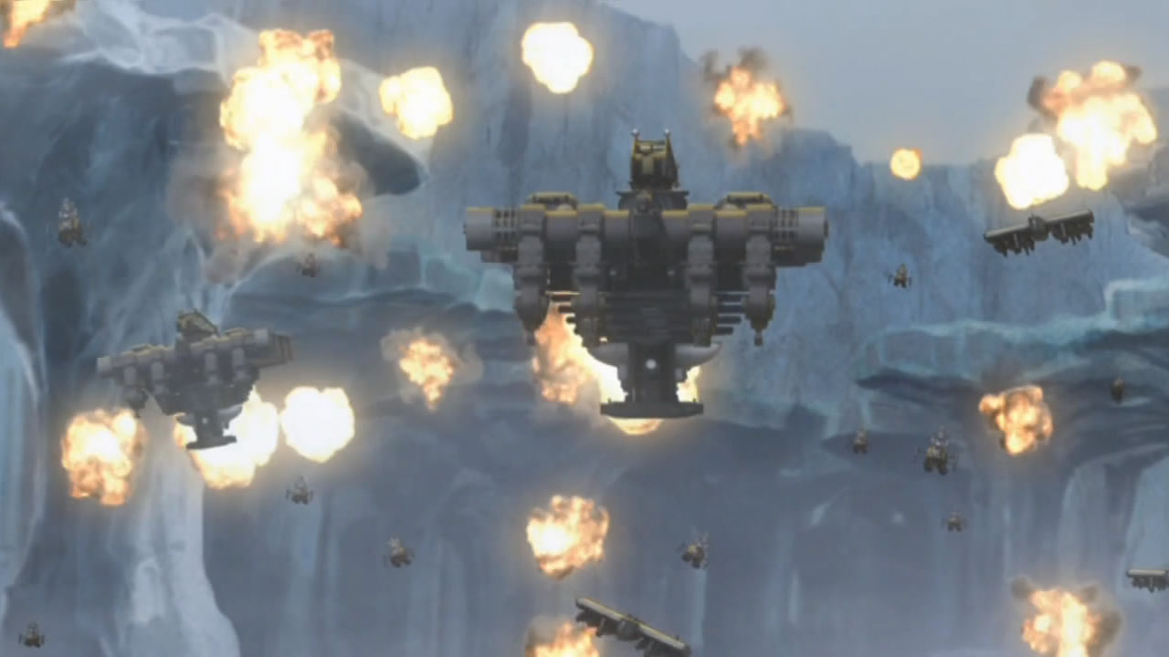 Now this is more like it. The Ades federation finally shows they have competent soldiers who don’t keep losing their ships to some half baked plans cooked up by two little girls. The “battle”(if you can call it that) was definitely the highlight this episode. The Sky Pirates were really trapped like rats eyeing the cheese in a mousetrap with how they boldly yet unwisely charged in to capture the 8 seemingly “easy prey” Ades ships. The Ades 3rd fleet had prepared the perfect cage for the trapped mice in that valley. Fortunately, Giselle manages to think up a plan for their getaway and the Sky Pirates manage to scamper away to safety, albeit with some heavy losses.