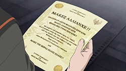 When Alvis was first shown on screen, I really thought that she was Holly Mad Thane. Guess I was just misled by her new look and long hair. Heck, each time I saw her in the intro when she was in the wheat field I always thought it was Holly, with Alvis already present in the green dress earlier in the opening sequence. Dio’s words also had me feeling anxious, wondering just who is the precious someone that Alvis lost. And was I the only one who was annoyed yet again at how idiotic that Fam can be at times, with her idea of storming into the new Lasas to kidnap Queen Lilliana? Even though she seems to be in a tight spot with a leaking fuel tank while 3 guild fighters are hot on her tail, we all know she’ll survive probably with the help of those Glacies pilots. Heck, her luck must be rank EX with how blessed by the heavens she seems to be, leaving Riders luck at getting that limited edition game way in the shade lol.