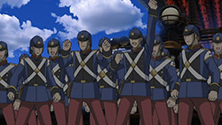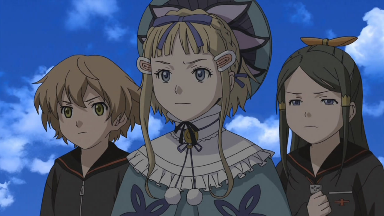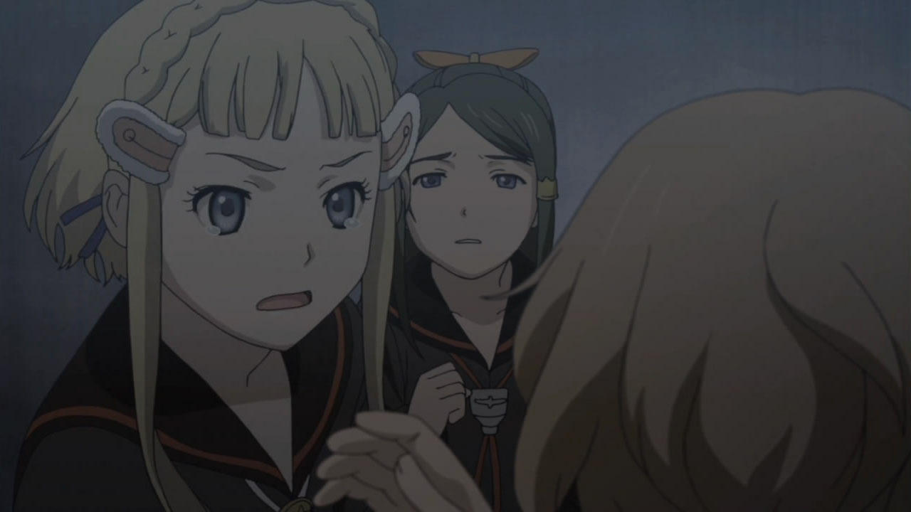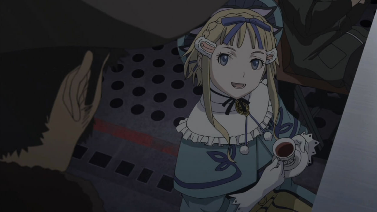 PrincessQueen Lilliana’s appearance was a neat turn of events, especially since I was expecting her to just show up in the third or fourth act as a hostage MacGuffin for Fam and the others to rescue from Luscinia. That may still be the case depending on the ultimate reason for her face heel turn, but whatever the reason it was still cool to see her doing something unexpected, though I would like to see the hammer space they pulled those hundreds of Turan troops out of in between episodes. Whatever manipulation Luscinia is using also propelled him to magnificent bastard status in my book, so kudos to this episode as well for enhancing his badass villain aura. As long as we’re talking villains I hate to say that I rather enjoyed watching the attack on the sky pirate village; all those cute, homely scenes with Gisey’s siblings have been constant sources of eye-rolling for me.I’ll admit to having seen the dubbed version of the first series, so the recasting of Al’s seiyuu doesn’t do anything for me one way or the other, though I agree that her outfit looks a little too retro and Guild-ish for my taste, especially when compared to the rather simple garb she wore throughout the first series. I automatically assumed that the loss Dio mentioned was her caretaker, Gita, who died all the way back in something like episode three of the first series, but I agree it does throw a bit more tension back on the Hourglass manga. I don’t think Claus would be killed off in between series; it would be a hit way below the belt for fans of the original and in-story Tatiana seems way to adjusted (I don’t think cheerful is the proper word here) to have lost her love interest. Vincent was as cool as ever, and I loved the appearance of what seemed to be a rebuilt and amphibious Urbanus and Vincent’s bespectacled XO.