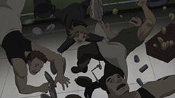 Civil war looks to be a Guild issue too, as Dio recognizes Alauda – on-board The Sylvius with his death squad in a stealth attack – as a fellow Guild member. With Ades attacking, Fam flees with Gisey and Millia (what – you’re just leaving Teddy behind?) to try and go into hiding, but they fall under attack from Luscinia’s forces. It seems obvious that the Glacies forces, who’ve been watching but not participating – are going to step in and save them, likely as an act of repayment for their rescue earlier. Vincent has been advised by Atamora that Glacies is his most important potential ally, so you know that’s going to be a major factor going forward. Ades has put the sky pirates under attack as well, taking the fight to their home base with potentially disastrous results.