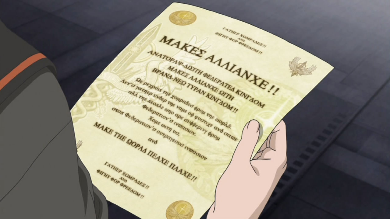 … … The title of this episode clearly states how the story is acting “Illegal Move” and yet it goes through? *twitch*. Not all combat comes at crossed swords. I would’ve loved some crossed words to show Millia as having grown some while creating her own nation :/.