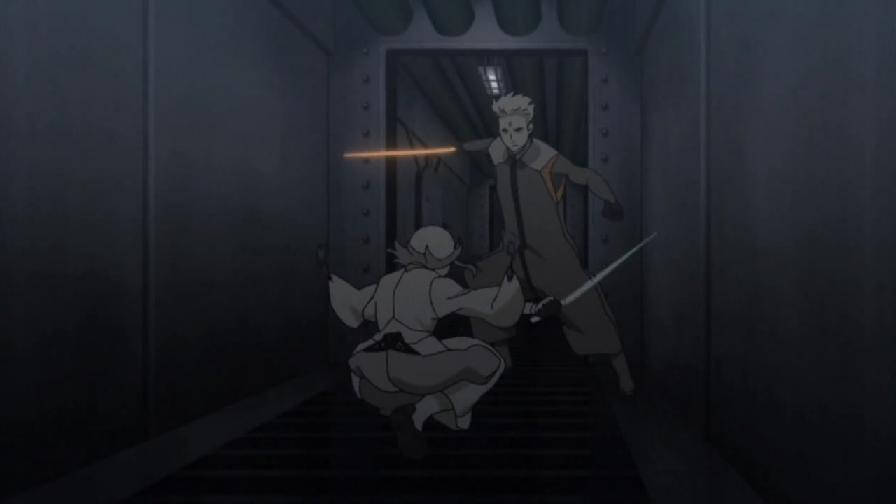 The lightsaber fighting was way too blatant to be anything other than a direct homage, which is totally cool. Guild hand to hand fighting contributed to some of my favorite fight scenes in the original, so if they want Alauda to be Luscinia’s personal Darth Maul hit man, that’s fine by me. Gotta wonder if Dagobert perished when the Ades death squad took over the engine room; I’m guessing not, since he wasn’t shown at all and the Guild renegade types have always seemed pretty good at making themselves scarce when trouble comes calling.