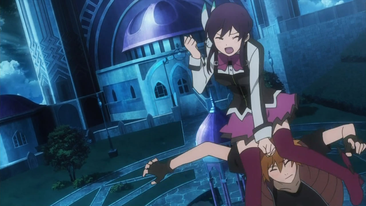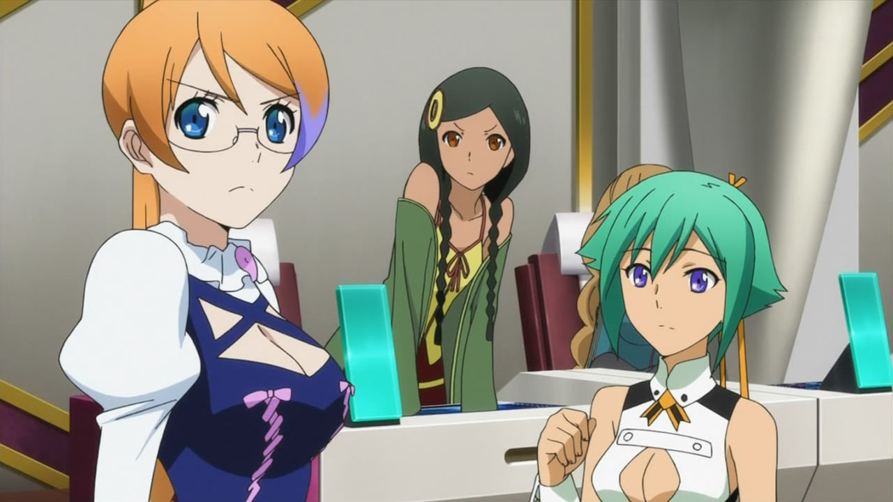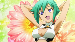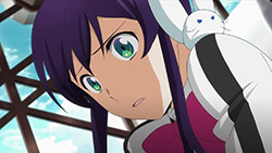 Rather than try and outdo themselves, the writers dialed the tension all the way back and injected silly moments throughout. There was Amata sticking his head up Mikono’s skirt and then “impressing” all the ladies with his ultimate Aquaria dogeza (i.e. prostration) begging for forgiveness — which surprisingly worked. With that angle of approach, the end result was pretty entertaining to watch, especially with the reactions of the teachers, Donar (Suwabe Junichi) and Suomi (Kobayashi Sanae). It wasn’t completely devoid of progression either with Cayenne revealed to be Mikono’s older brother and Andy W. Hall (Toriumi Kousuke) befriending Amata thanks to his stupid ways. We were also better introduced to the other girls in Zessica’s squad, Mix (Fujimura Ayumi) and Sazanka (Nakajima Megumi), who have polar-opposite stances when it comes to mingling with guys. (Hurray for Megumi’s character; Boo for Ayumi’s, at least until someone “mixes” her up in a union with guys.)