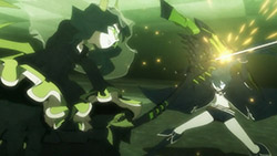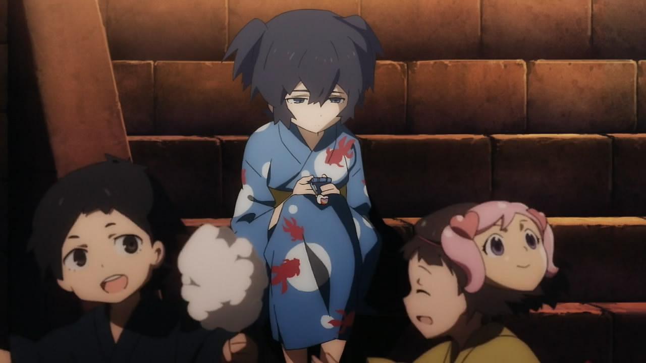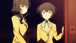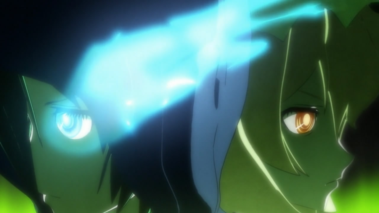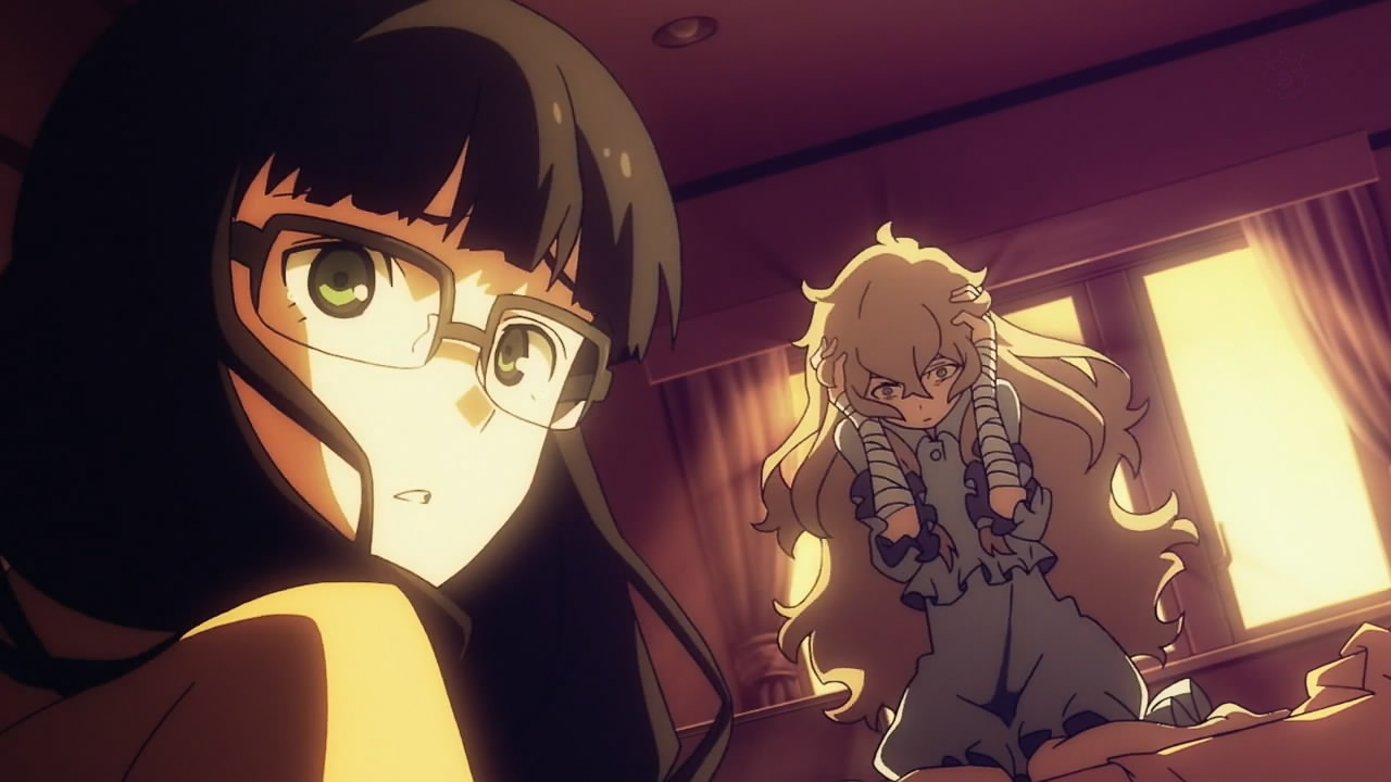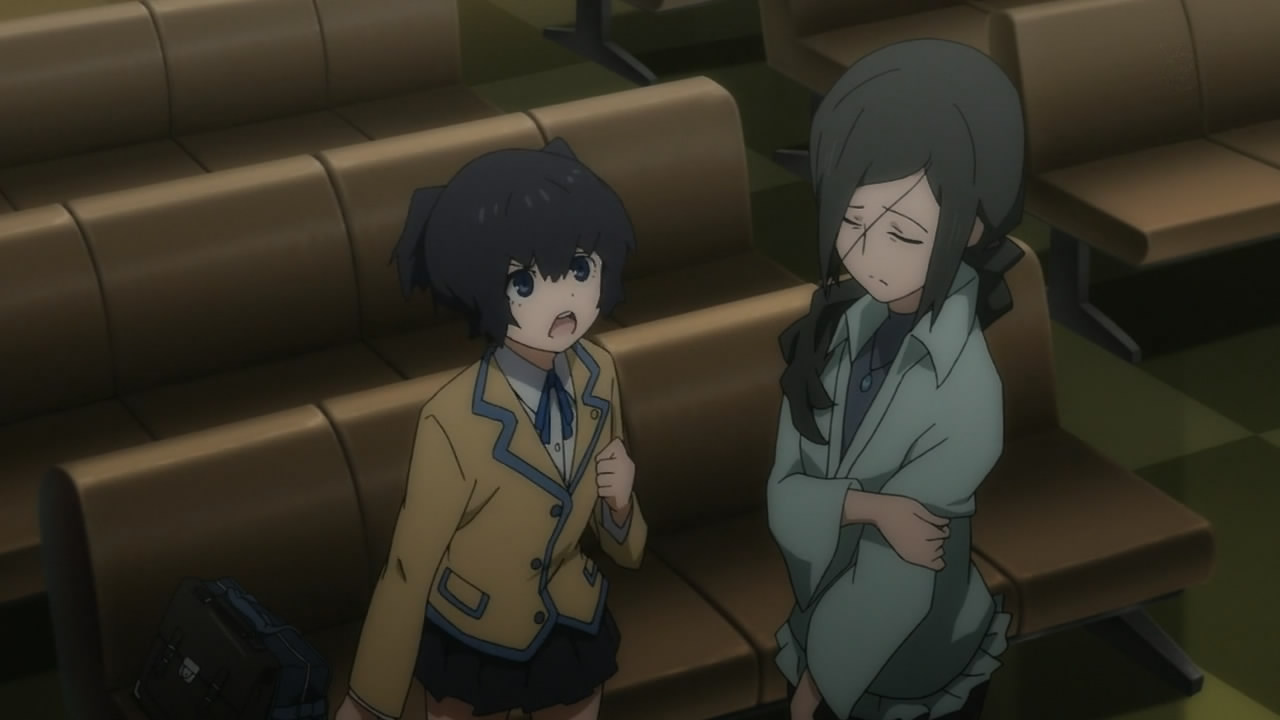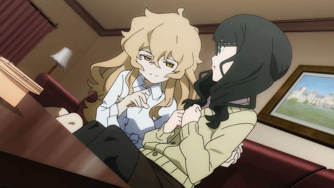 But seriously, Mato is trying to be friends with Yomi, a girl she met at school except Yomi is being guilt-tripped into basically servitude by Kagari because of a car accident. While these three are trying to resolve their issues, the crazy fighting of the girls’ “alter-egos” is going on in the “other world”, which really is anyone’s guess as to how it’s connected to the “real world”. The basic set-up of this show is a mystery that right now is putting “Another” to shame with just the sheer lack of information.