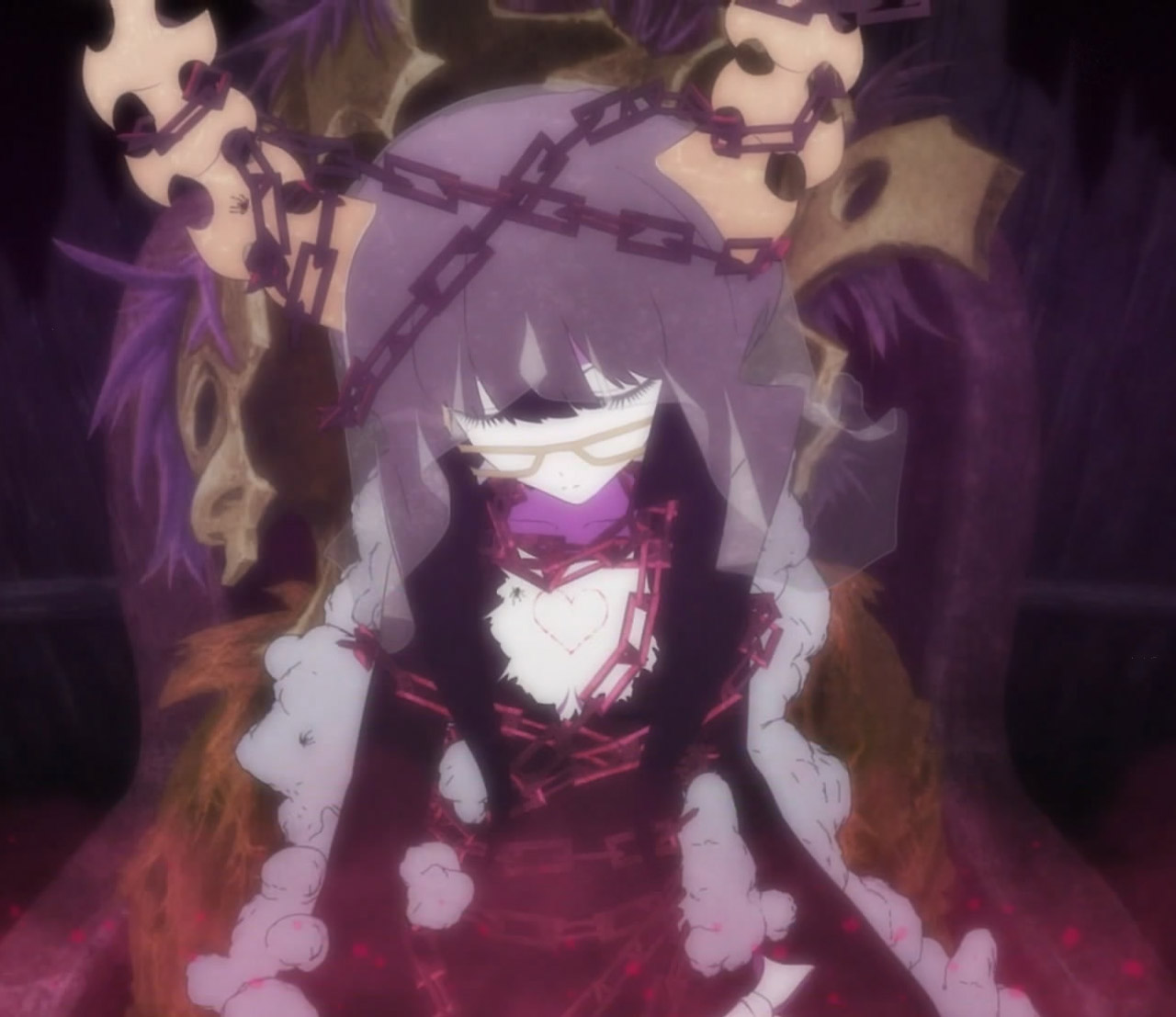 Ok people, start who thinks Kagari is one of the more twisted characters you´ve seen in anime recently, because you´ve got to admit the girl is damaged beyond salvation. She takes pleasure in destrying Yomi´s life so that she would chain to her alone, so in a sense Death Master´s chains are not truly her weapons but the simbol of her imprisonment by Chariot (Kagari). Using guilt to manipulate is the oldest and most repulsive trick in the book, reason why I find a little hard to belive Kagari could redeem herself for her past behavior so maybe that´s whre the supernatural element kicks in.