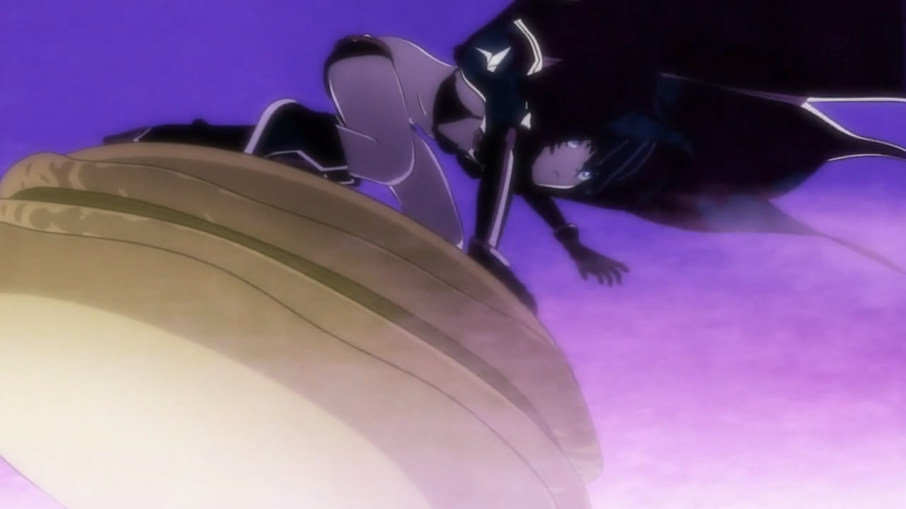 If you’re not watching Black Rock Shooter simply because you were never caught up in the hype of Huke’s original character, I strongly suggest giving it a try. The anime combines beautiful cinematography with fluid animation in carefully choreographed fights, features amazing performances by Hanazawa Kana, Sawashiro Miyuki, and Kitamura Eri backed by a fantastic soundtrack by Supercell, and depicts a unique story that has some surprisingly dark and gruesome undertones. Very stylish, very refreshing. Potentially a must-watch show. The dialogue-less yet gruesome battles in the alternate world continue to impress, as does the directing by Yoshioka Shinobu who clearly has a vision behind a lot of the scenes. Special attention is paid in the use of camera angles, which goes a long way in bringing out the emotions of the characters and the emphasizing the mood of the series. From an artistic standpoint, there’s plenty to like about Black Rock Shooter, but it goes a step further by providing an untypical high school story that’s a lot creepier than its OVA counterpart.
