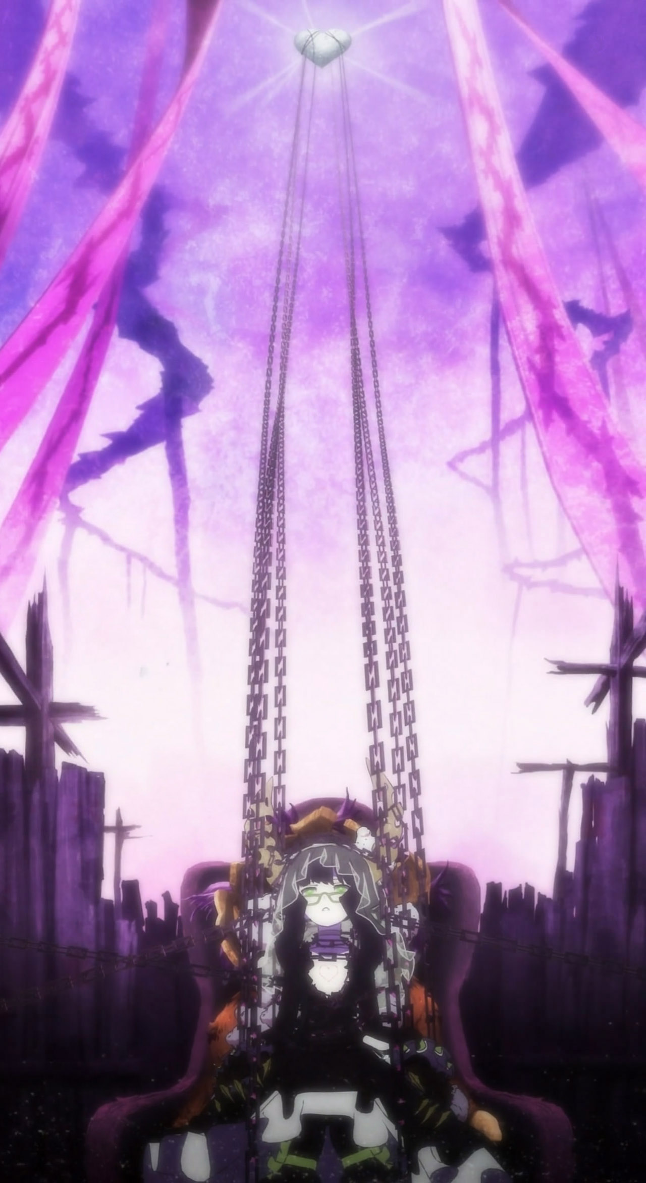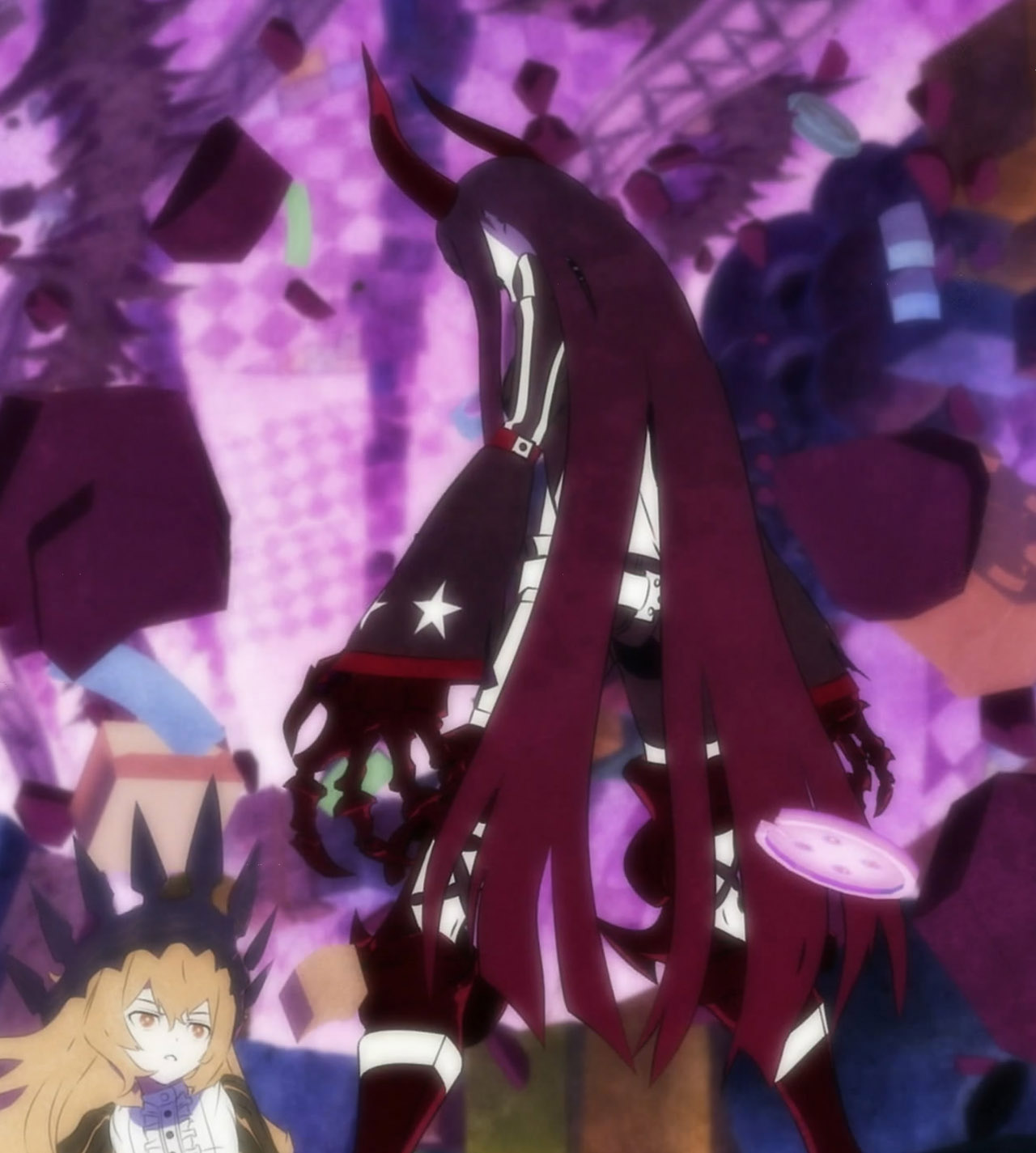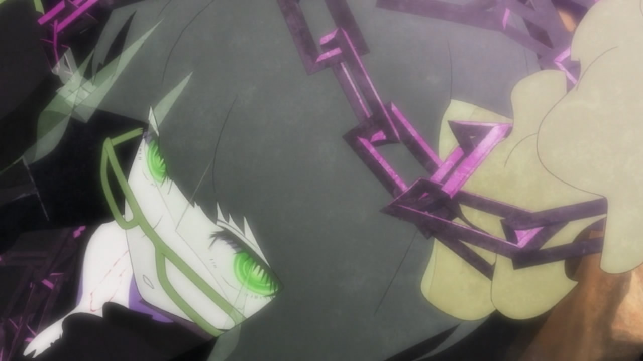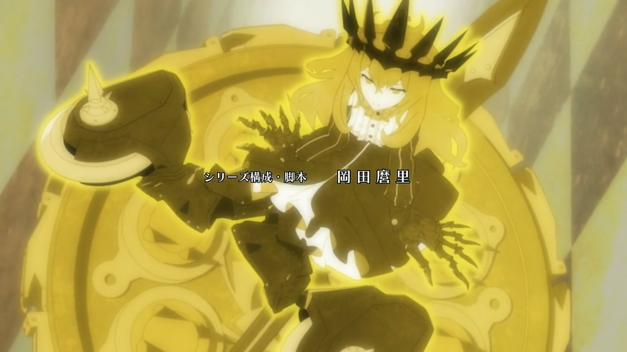 I get the feeling that Black Gold Saw is going to be the “Final Boss” in this series. With Yuu/Strength being manipulated by her. the fact she was looing down on things in the very first episode means she’s much more connected to the alternate world.