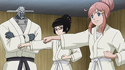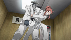 Marika’s training was a great watch. Its nice to see her slowly learning the ropes and have fun doing it. Misa’s cardboard presentation was hilarious and even Marika lampshades it. I also liked during her first “raid” where she reads from a script then slowly tosses it away when she starts getting more into it. Seeing Marika hog a tsundere Chiaki was icing in the cake too.