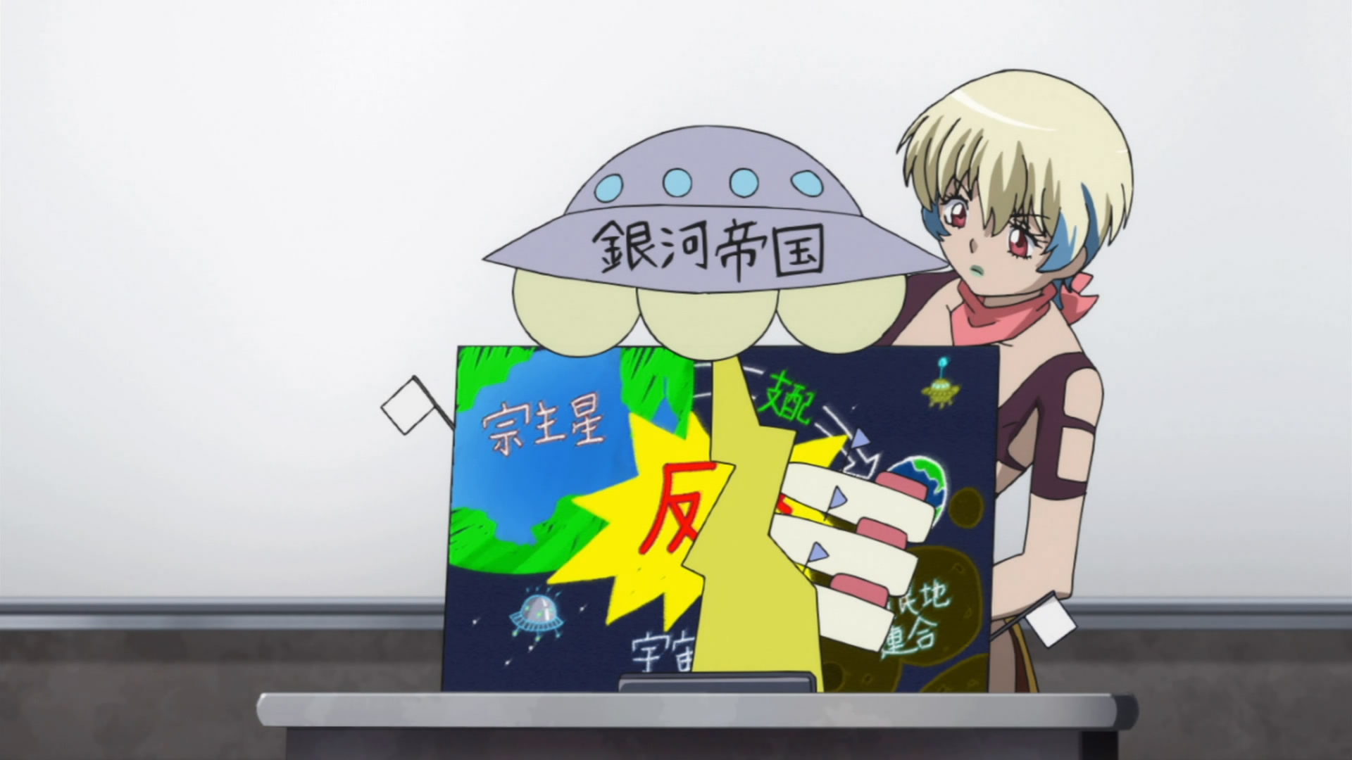 Ah Marika, such a loveable high school space pirate captain. The way she gets strung along and gives it her all — even when it comes to plastic Bentenmaru models — is just too endearing. Best of all, she’s modest about her abilities as she’s more surprised than anyone else at how quickly she’s thrown into the space pirate thick of things. This week proved to be a very fun and lighthearted look into the series that continues to defy generalizations, as the setting shifted from Marika’s Space Yacht Club to the Bentenmaru. We’re not given a proper introduction to all the crew members mateys, but it wasn’t too hard to pick out the key ones seen in the ending sequence: Hyakume (Fujiwara Keiji), Luca (Mizuhara Kaoru), San-Daime (Matsuoka Yoshitsugu), Schnitzer (Miyake Kenta), and Coorie (Horie Yui in a Miya-like “nishishishi” role). In lieu, we were given a mesmerizing in-depth look at the world of Umi no Akeboshi, the history of space pirates care of Misa’s awesome hand-made storyboards, and most importantly, what it really means to be one.