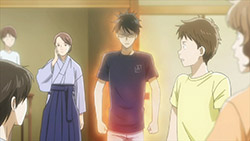 It was inevitable that when Arata re-entered the story in a meaningful way it was going to be dramatic, but Chihayafuru really did the moment justice when it finally happened at the Yoshino Qualifier. Of course as always, the timing was the worst humanly possible for Taichi. If that poor boy goes to the shrine on New Year’s his fortune must say “bad luck” every time, because timing is not his friend. With Chihaya – told she’s about to fail out and be forced to repeat a year – and Nishida studying under the watchful eye of tutor Tsutomu-kun, Taichi – who was the only one who had more at stake than simple practice for the Eastern Master/Queen Qualifier – went to Yoshino on his own to take his last chance to make the leap to Class A. And it seemed to be going well, as he breezed through his first two matches. But then, this is Taichi, so you knew it would all blow up in his face. Harada-sensei points out that Arata has come to compete at the worst moment for Taichi – and even worse, Arata hands Taichi his phone number and E-mail to give to Chihaya. Arata didn’t do it on purpose but that was the worst thing he could have done, and Taichi’s concentration is shattered, causing him to lose in the third round. As this is happening Arata is competing in the Class A tournament (along with Harada-sensei) and Chihaya has ditched Tsutomu, racing off to Yoshino to root for Taichi. Tsutomu’s response to this is a simple and concise text about running away from responsibilities, but the point still hits home.