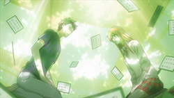 I felt split on Arata’s loss. One side of me wanted him to destroy everyone at the tournament but another side of me was glad to see that he was just an extraordinary player who was rusty after a long absence of playing Karuta. For me there were two highlights in this episode. One was when Taichi realize how happy he was to see Arata back. Second was his response to Harada-sensei’s offer to promote him to class A. That showed me that he’s changed like how Arata pointed out when they met. He’s no longer taking the easy road but will slug through the hardship to get to where he wants. I did however found it funny that all the effort Taichi put into not directly pursuing Chihaya was for nothing because of Arata’s assumption that the two would be a couple. That made me like Arata more because he didn’t have any delusion that he had a shot with Chihaya due to his absence in her life physically. After that exchange he had with Taichi, I’m no longer hoping for a ArataxChihaya and more comfortable with a TaichixChihaya because now I want to see a ArataxShinobu. Man, talk about a powerhouse team haha.
