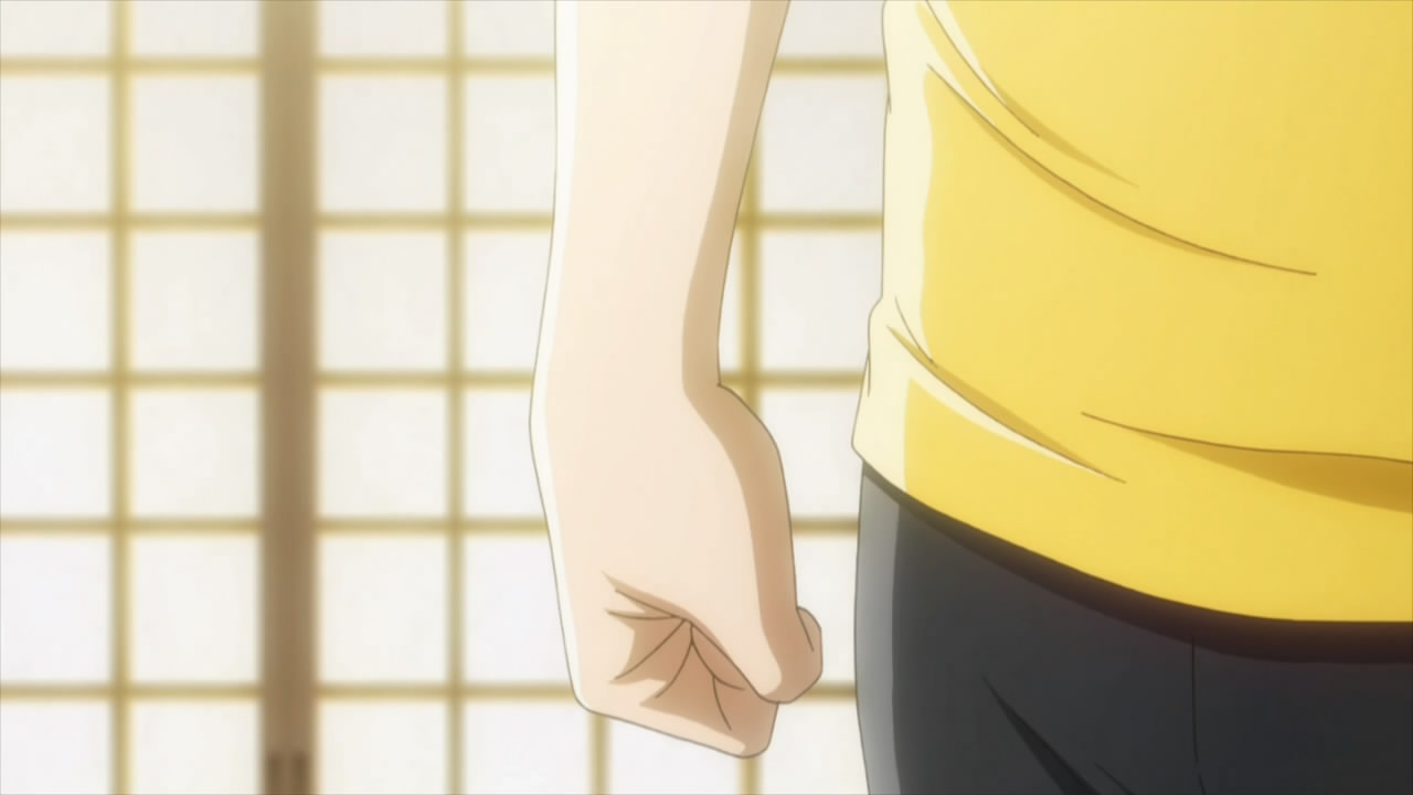That scene – Harada’s thoughts, the station announcer’s message, Taichi’s reply, Harada-sensei’s reaction – is probably the best I’ve seen in any anime this season. Every thought I’d had about Taichi’s journey (many of which I expressed in last week’s post) was captured in this simple exchange, and it completely validates the experience of watching this series and responding to the character the way so many have. That’s spectacular writing, truly rare and special – maybe the best in a consistently well-written series. It looks at this point as if the anime will wrap up at the Eastern Qualifier, with Arata and Shinobu joining Chihaya in the tournament – but I can’t help but wonder what Taichi’s role in that drama will be. My faith in both the mangaka and the director is strong, and I can only trust that Taichi won’t be an afterthought in that final drama. But for Taichi’s fans as well as the character himself, frustration can’t last forever – indeed, we can’t keep going forever without some measure of reward…