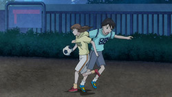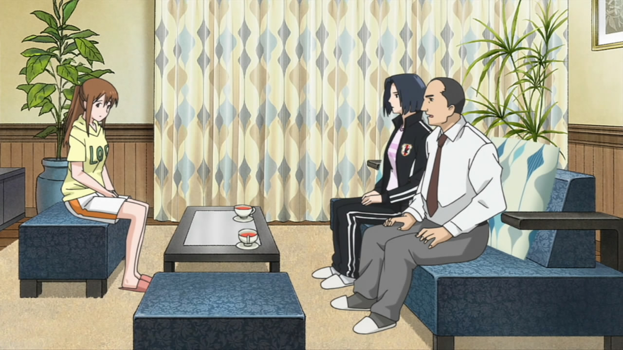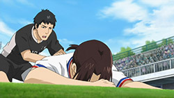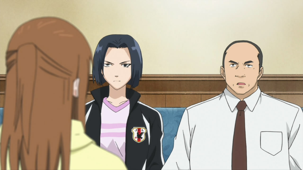 Back to that main event though. Mitsuya joins the cast as Goto, coach of the Nadeshiko – the Japan Women’s National Team – and Hidaka is the captain, Taeko Ishiki. Seven’s football skills have quite an international reputation, evidently – and the two of them have come to recruit the “Little Witch” to join the national team. She’s reluctant because she doesn’t want to leave Kakeru’s side, but once she helps him figure out his fatal weakness on the ball (which was actually pretty obvious) he convinces her to go ahead and chase her dream. This is a positive, as I’m anxious to see her as more than a manager and while it’s preposterous that a team that was good enough to win the World Cup would add a 15 year-old as a regular, it should prove good entertainment. With a little Seven-Kakeru development thrown into the mix (I think they’re innocent enough that shoulder-bumping is practically a confession) it looks like we’re finally going to see Seven’s character come into her own. As for next week I guess these guys don’t know the six-episode rule, because they’ve held off on their onsen episode till #8 – but I’ll be shocked if it isn’t a pretty innocuous take on that anime cliché.