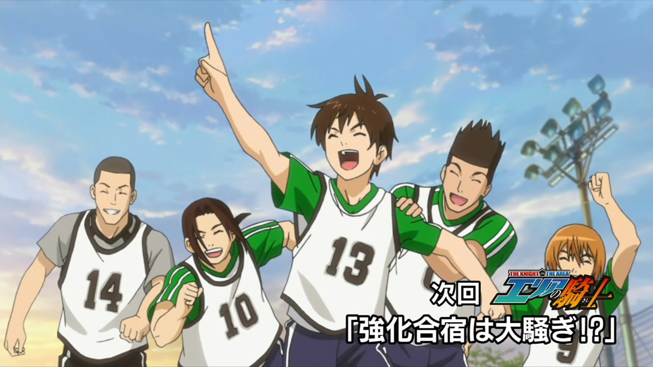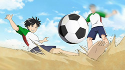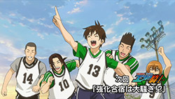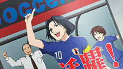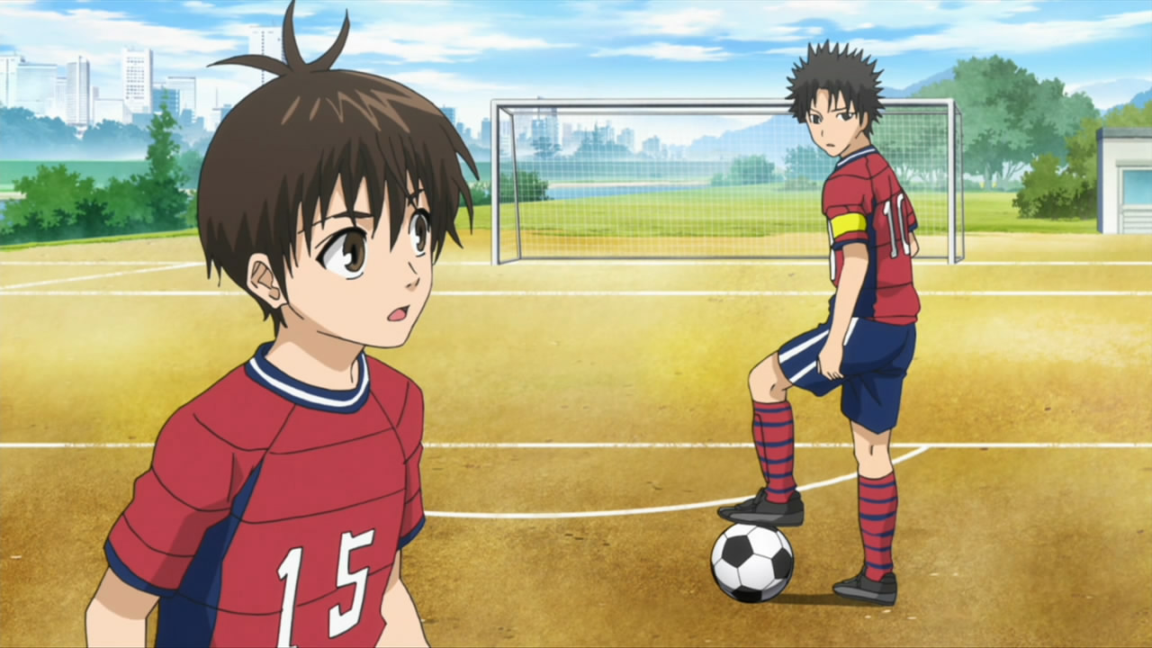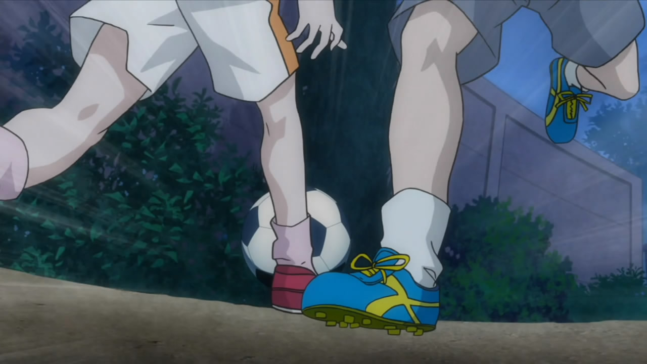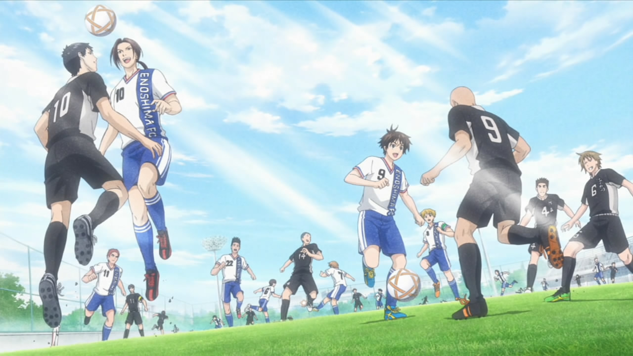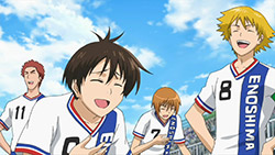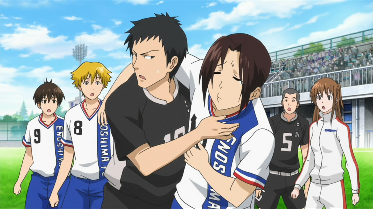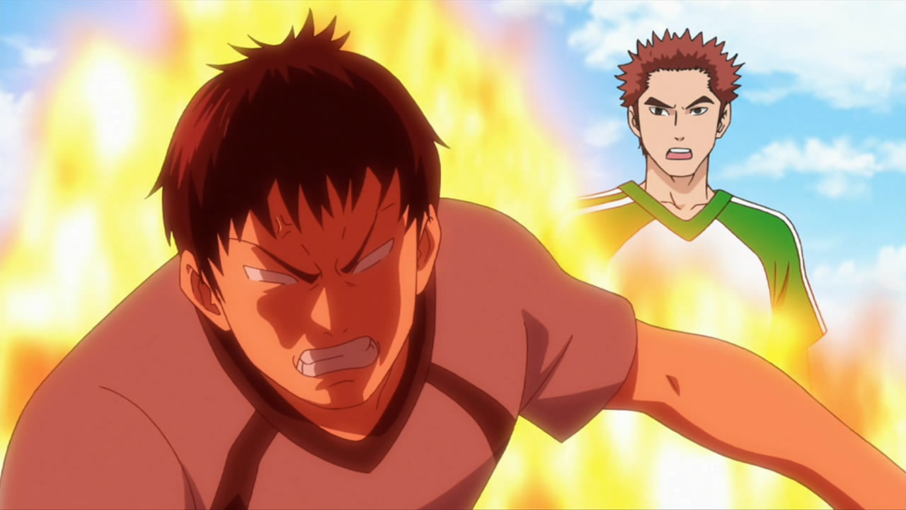 This ep was titled “Conclusion” and while it opened many new plotlines, it did wrap up the events of last week pretty thoroughly. Kakeru’s bicycle kick died on the goal line, the ref blew his whistle and the match ended in a tie. Rather than a replay or PKs, Coach Kondou of the SC decided that he would resign as coach, and allow Iwaki to take over a joint SC/FC team to represent Enoshima High. He did this to make amends for not supporting Iwaki when the FC almost won the championship several years earlier, but this was all a bit too convenient for me – indeed, Iwaki and Kondou spent most of the ep telling each other how great they were. What can’t be denied is that there’s seemingly enough talent on the combined squad to do some serious damage, and the SC was only able to stall the FC charge by abandoning Kondou’s tactics – so kudos to him for recognizing that, I suppose.