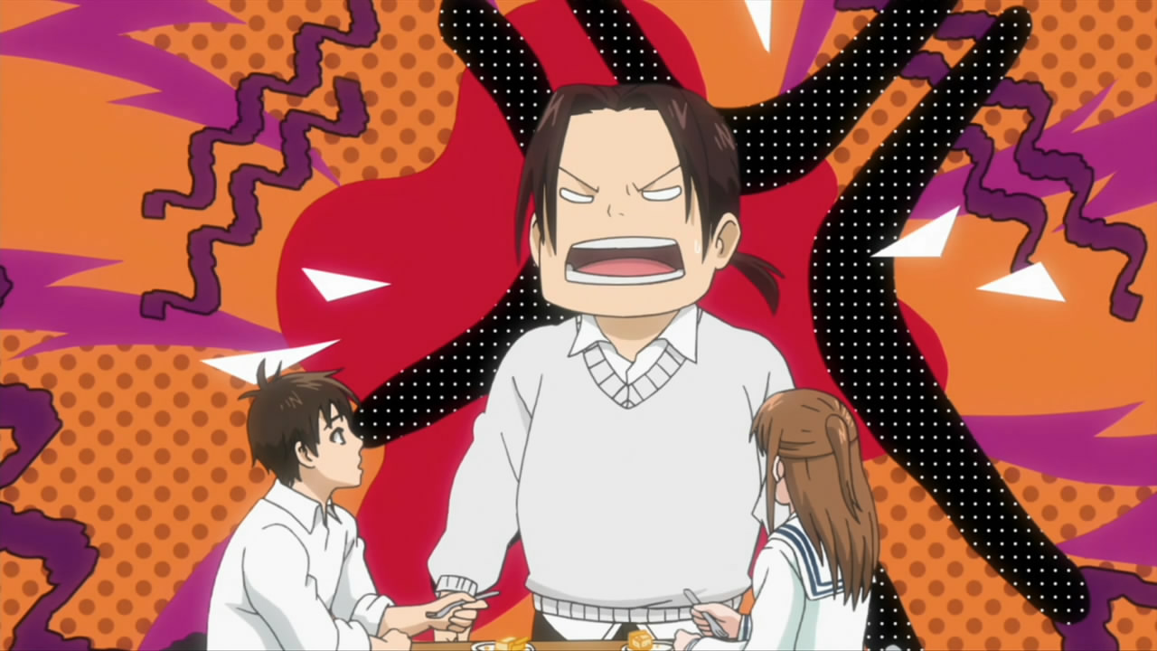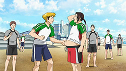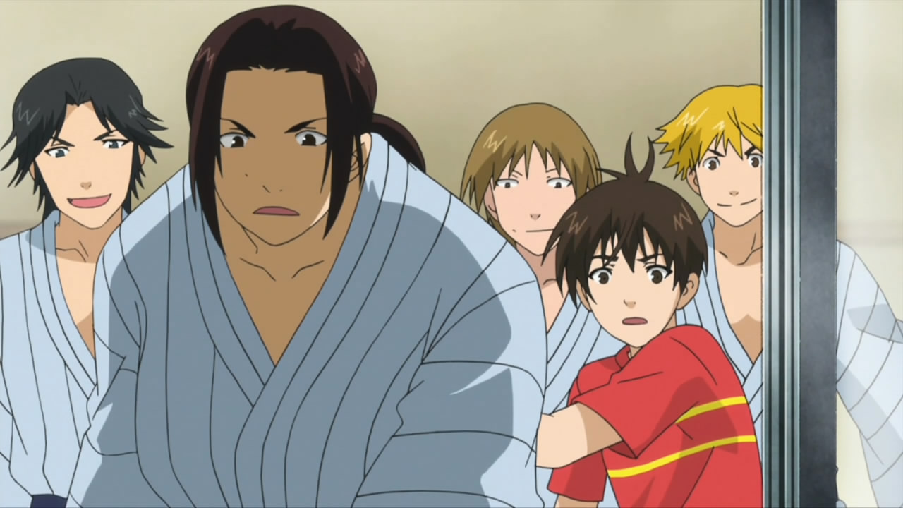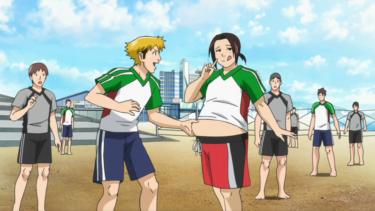 Naturally there were some growing pains as the two squads merged – a clash of styles and two squads worth of players fighting for one squad’s worth of starting positions will lead to that. Most interesting, though, was that Araki showed up having regained every pound he’d lost, and just as quickly. Well, whatever – that ain’t a healthy way to live, that’s for sure. Iwaki is a bit too soft on Araki for Seven’s taste, and she put herself in charge of his diet and generally making his life hell. The weight yo-yo thing is pretty out there, but I have to admit Ishida Akira (who I don’t always care for) is having great fun with the role of Araki – his humor is on a different level than the rest of the cast.