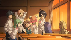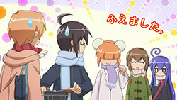 But let’s not forget our two lovebirds Io (Okamoto Nobuhiko) and Tsumiki (Ookubo Rumi). While the probability of them ending up together is close to zero since things like that don’t happen in a slice-of-life like this (and because Io doesn’t seem to notice all the lovey-dovey signals Tsumiki sends his way) I enjoy watching all the teasing Tsumiki receives. Now don’t get me wrong, I love my romantic comedies as much as the next guy but when a show stops taking a relationship seriously and opts to keep things one-sided but takes a positive approach about it, I’ll give it a big fat thumbs up if they do it well. Because when it’s done well, it means those sneaky writers can at any moment throw in some super heartwarming situation and it’ll still make our hearts melt all the same!