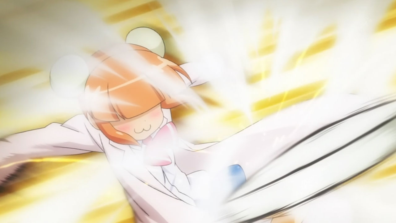That Ahoge… transforms into nekomimis! Also; her hair! It’s almost as long as she is tall!!! I liked the first ep (super adorable), but I’m still not 100% sold. Also. Street Fighter = Idiot fighter,or something along those lines. Thanks Takaii 😀