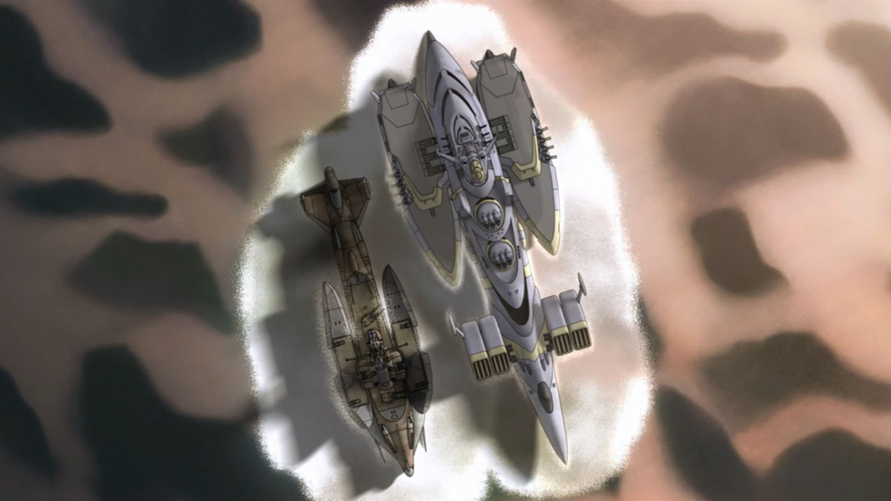 Regarding the meeting, maybe it’s “Last exile: fam the silver wing” doing it’s toll on me, I just found fully armed and armoured military ship (probably with its own marine force on board) surrendering to pirates just because their engine’s been taken out totally absurd. I also don’t see Gido as someone giving up so easily.