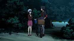 So far I only see her interactions with Chihiro, and I love each scene they have. They’re adorable together and what I find most attractive about Chihiro’s personality is how outspoken and fun he is (even when interacting with girls). Especially when he does not even bother hiding his love for the undead. His relationships don’t progress forcefully (or for the sake of story); although Ranko seems a little out of place. I wonder how her story will be intertwined, and at the same time, hope that she’s not another tool to be used as a third wheel. She’s a great source for comedic relief at least, (and Jogorou of course!) and even though this episode was dim and serious, I found myself smiling at some of the most random moments. If an anime can make me smile, disgusted, sympathetic and anxious all at once, the producers must be doing something right.