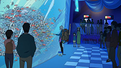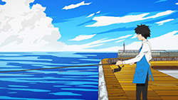 One of the things about Tsuritama is that it seems to embrace the concept of visual storytelling with a readiness that is rarely seen in Japanese animation outside of big-budgeted movies, and is quite frankly is a refreshing departure from what I am used to watching. Very little is said about the characters themselves in the episode meant to introduce them, and even the dialogue consist mostly of ordinary exchanges between characters or their moment-to-moment thoughts that accentuates the action on the screen. This lack of the character-driven introspection, which are so common with non-action shows, stood out greatly to me, and the show seems content with leaving the audience to infer from the actions and expressions of the cast, such as the surreal scene between Haru and the fishes in the aquarium, and Yuki’s various panic attacks. Little tibits are sprinkled throughout the episode, such as Yuki’s reliance on his phone and Haru cowering from the cat. While it is hard to tell if Director Nakamura Kenji intends for this trend to continue, the potential for an anime which shows instead of tells is immense.