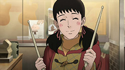 Theres one other, subtler jazz moment I want to highlight, and that was Watanabes tribute to one of the great moments in American jazz. In 1938, Benny Goodman and his orchestra played Carnegie Hall in New York the first time a jazz band had ever played this renowned temple of classical music. The band was very nervous, tight and this was obvious to legendary drummer Gene Krupa. During Sing, Sing, Sing he launched into the most famous drum performance in jazz history he went crazy in order to shake his bandmates out of their trance and it worked. That it was Kaoru, the pianist, who did it here in order the shake up Sentarou, the drummer, only makes the moment that much better.