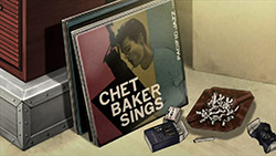 In closing, this episode was quite a feast if youre a jazz fan. From the moment I saw the Chet Baker Sings album in the background I knew wed get to If Not for Me sooner or later, and it happened at the Gaijin Club where the Mukae Tsutomu Quartet made their debut. There was a lot to this sequence to be sure, including the complicated nature of the relationship between the Japanese and the American servicemen stationed there. Its hard for Americans to imagine what it would be like to have foreign military in the country, whether they were wanted or not, but to say there are many issues involved is an understatement. But it was these Americans who basically brought jazz to Japan, where it flowered in ways no one could have predicted and jazz clubs like Bar Stella were common in towns near American bases. And so, sadly, where drunken racists like the fathead at the bar who railed against coon music and asked for white jazz instead. And indeed, thats what Brother Jun delivered a classic piece by George and Ira Gershwin, very much in the style of Bakers rendition from that album. Bakers tragic life story was all too common in jazz a rare talent, an instrumental virtuoso with a beautiful voice, he was also a heroin addict who died far, far too young leaving so much unfulfilled potential behind.