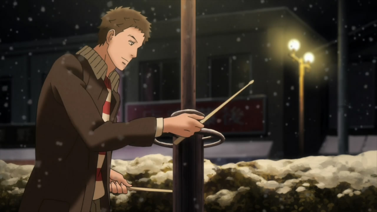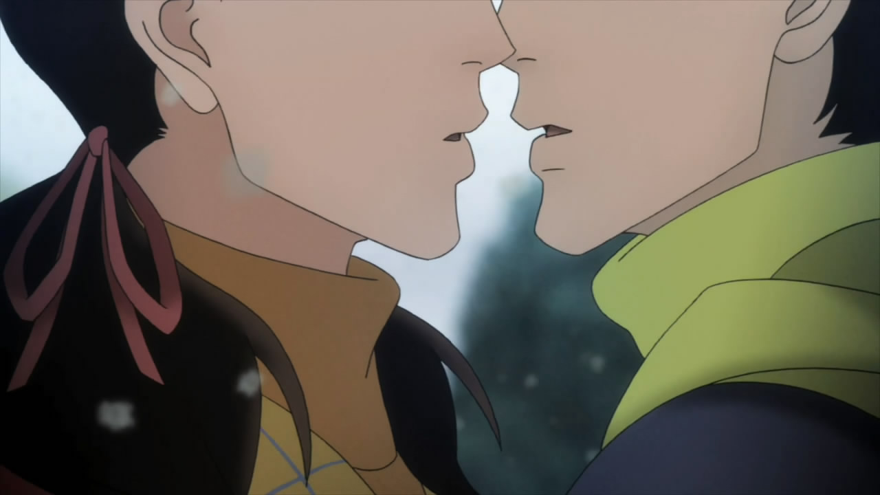 That kiss’s got to be my favorite kiss scene I ever saw in an anime. So romantic with the snow falling down, jazz in the background, plus that act of taking his glasses off! Just perfect.