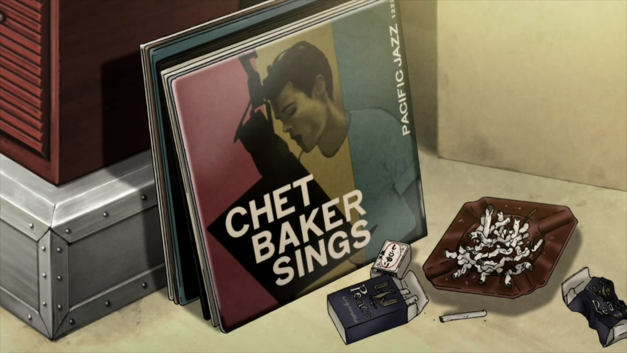In closing, this episode was quite a feast if youre a jazz fan. From the moment I saw the Chet Baker Sings album in the background I knew wed get to If Not for Me sooner or later, and it happened at the Gaijin Club where the Mukae Tsutomu Quartet made their debut. There was a lot to this sequence to be sure, including the complicated nature of the relationship between the Japanese and the American servicemen stationed there. Its hard for Americans to imagine what it would be like to have foreign military in the country, whether they were wanted or not, but to say there are many issues involved is an understatement. But it was these Americans who basically brought jazz to Japan, where it flowered in ways no one could have predicted and jazz clubs like Bar Stella were common in towns near American bases. And so, sadly, where drunken racists like the fathead at the bar who railed against coon music and asked for white jazz instead. And indeed, thats what Brother Jun delivered a classic piece by George and Ira Gershwin, very much in the style of Bakers rendition from that album. Bakers tragic life story was all too common in jazz a rare talent, an instrumental virtuoso with a beautiful voice, he was also a heroin addict who died far, far too young leaving so much unfulfilled potential behind.