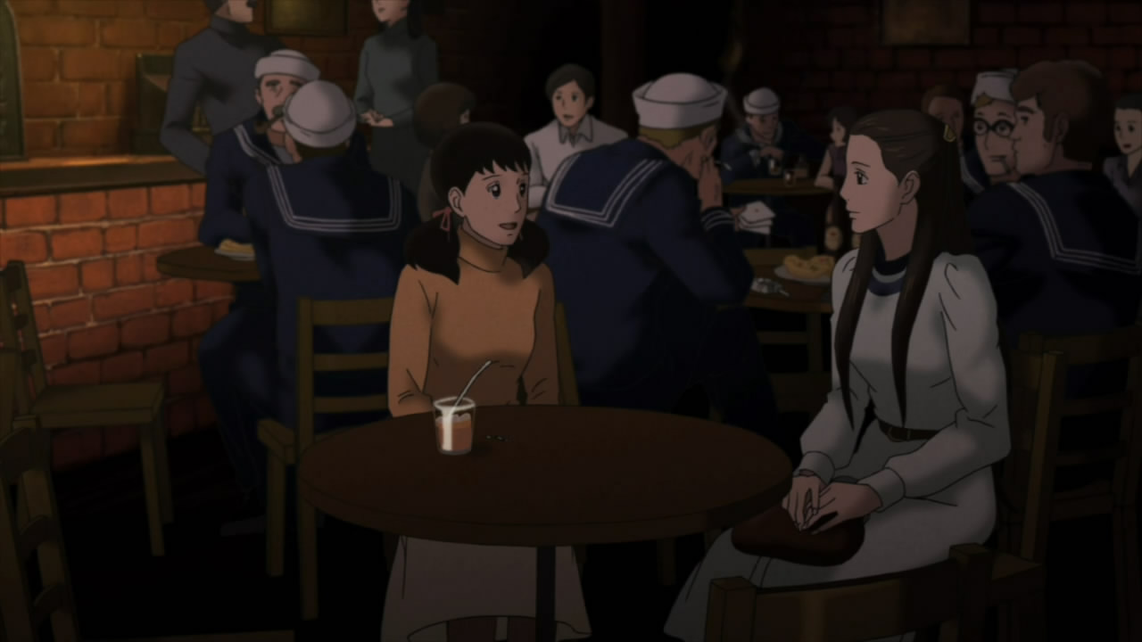 The funny thing is, even all this new knowledge doesnt really change anything. Sentarou is the child of an American serviceman, was abandoned by his parents and wears the rosary as a memento of his mother, Kaoru is the lone male heir in whats clearly a moneyed family. But Sentarou is still a rebellious spirit and Kaoru is still a lonely guy who knows that hell be moving on yet again, sooner or later, and must wrestle with the conditioning that tells him not to get attached. What has changed, certainly, is the nature of the romantic relationships in the show and more than just the revelation that what Kaoru walked in on last week was indeed a modeling session. Yurika and Junichi wasnt something I saw coming, but I probably should have even the guys in the show are half in love with Brother Jun (including Ritsukos father) and he seems a better fit for Yurika in many ways. This has implications for every relationship of consequence in the series, make no mistake the ripples from those last few seconds are going to lash against every shore before long.