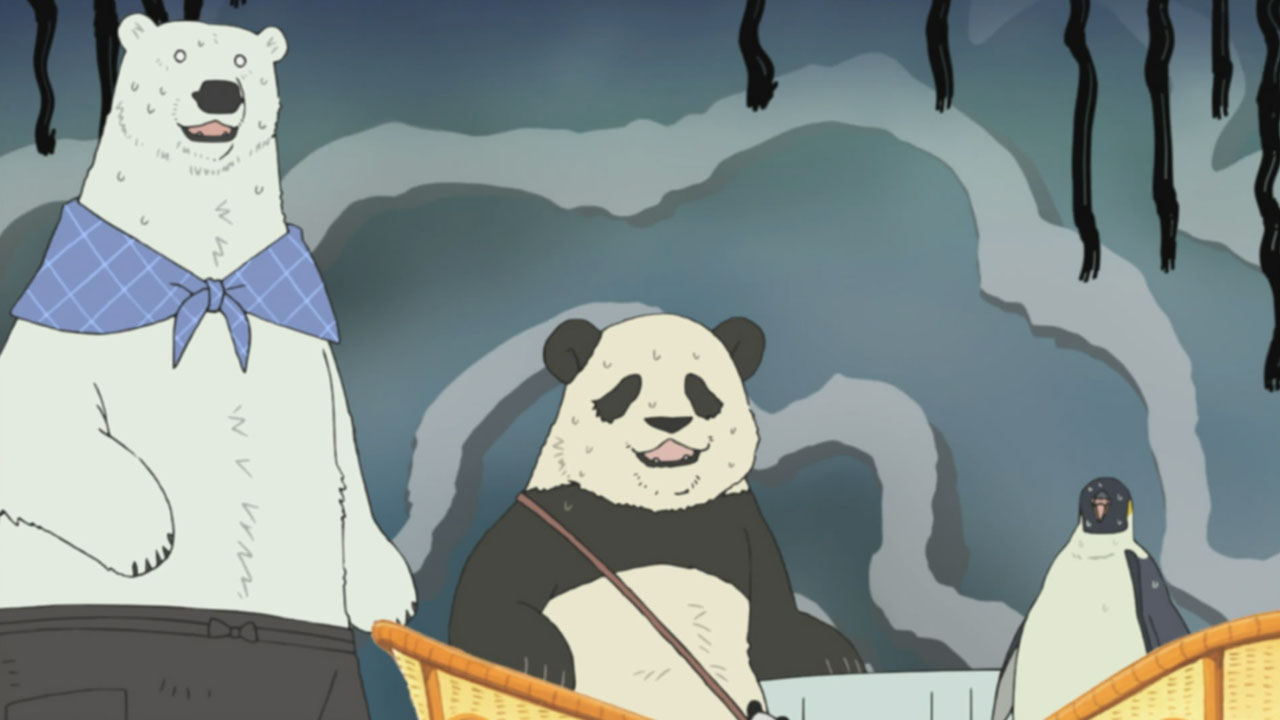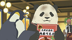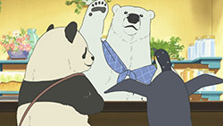 I would appreciate it if this new Panda kept up for the rest of the show… but that’s not likely. For now, let’s just hope Panda’s antics attract the other characters, which this episode’s latter half did quite nicely. Although some of the jokes seemed a little tried, such as the Panda and Penguin V1 parfaits, most jokes hit 2nd or 3rd base. One home run was hit with one of the last jokes, as it speaks all too well to the reactions when eating a) food that looks artsy, and b) food that looks like you. Unbearable to destroy…unsettling to watch pretty much sums up the feelings upon consuming food art. It was nice to see the over-reactionary side-animals play their part in visualizing the other fail parfaits, with my favorite anteater hailing in high-tension awesome as always. It’s a shame they didn’t include sloth in this segment, as he usually brings down a good joke… albeit slooooooww——