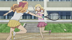 There’s another reason this show keeps making me think of Nickelodeon…every episode has a message, some kind of lesson to learn, and the strength of the episode depends not only on how well it’s done, but also on how good the message is. That’s probably why I feel that the first two episodes were the best ones of any up until now, whereas the the three preceding this one weren’t as strong. Compared to friends reconciling and deciding to enjoy what time they have left together, how could an otouto‘s friend problems, Yuka‘s love problems, or Rin‘s LSD / fail whale problems compare? This one brings it back to a message which resonated with me, that we should not just work harder, but work smarter as well, which is why I really enjoyed it. Honesty is great, but tennis is a battle, so I’d rather bet on deceptive Saki over honest Natsumi any day…until the end of the episode, of course.