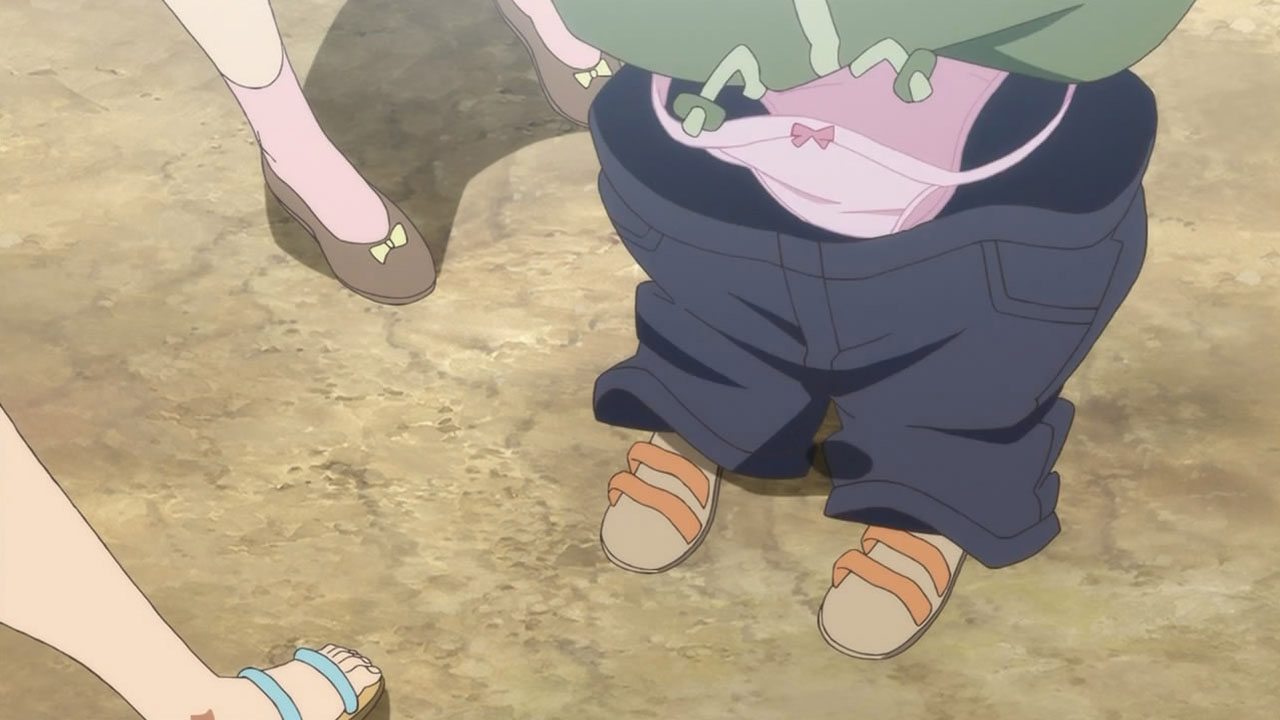 Somehow, I’m starting to really feel the slice-of-life aspects of this show. It’s about this time in the season where I start itching for plot from those shows that are still warming up, which is why I was getting a bit cross with Kore wa Zombie Desu ka? before it started getting serious this week (or, as serious as it ever gets). With Natsuiro, the first two episodes were heavier on the plot than most slice-of-life shows (at least to me), so I guess it never really sunk in that this show truly belonged to the genre. No more! Other than the axe of Saki’s imminent departure still hanging over their heads, we’re still on the wish-of-the-week formula. With that in mind, the only question is how well each week’s wish-story goes.